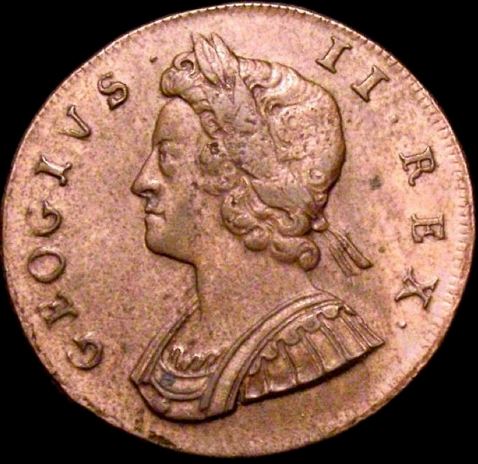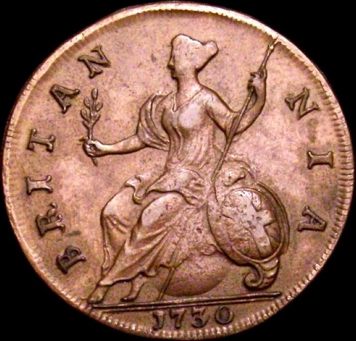 1730 Halfpenny GEOGIVS error No reverse stops S3717 BMC 837 Very scarce GVF