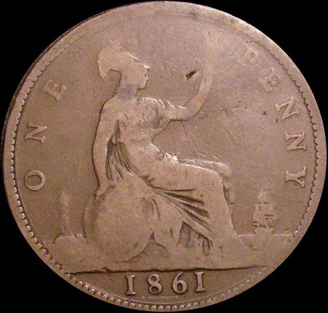 1861 Penny S3954 F28 Obv 5 Rev G Excessively rare (R18) Fair