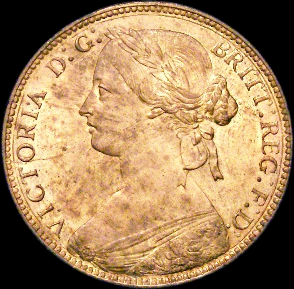 1860 Penny S3954 F13 Obv 3 Rev D UNC