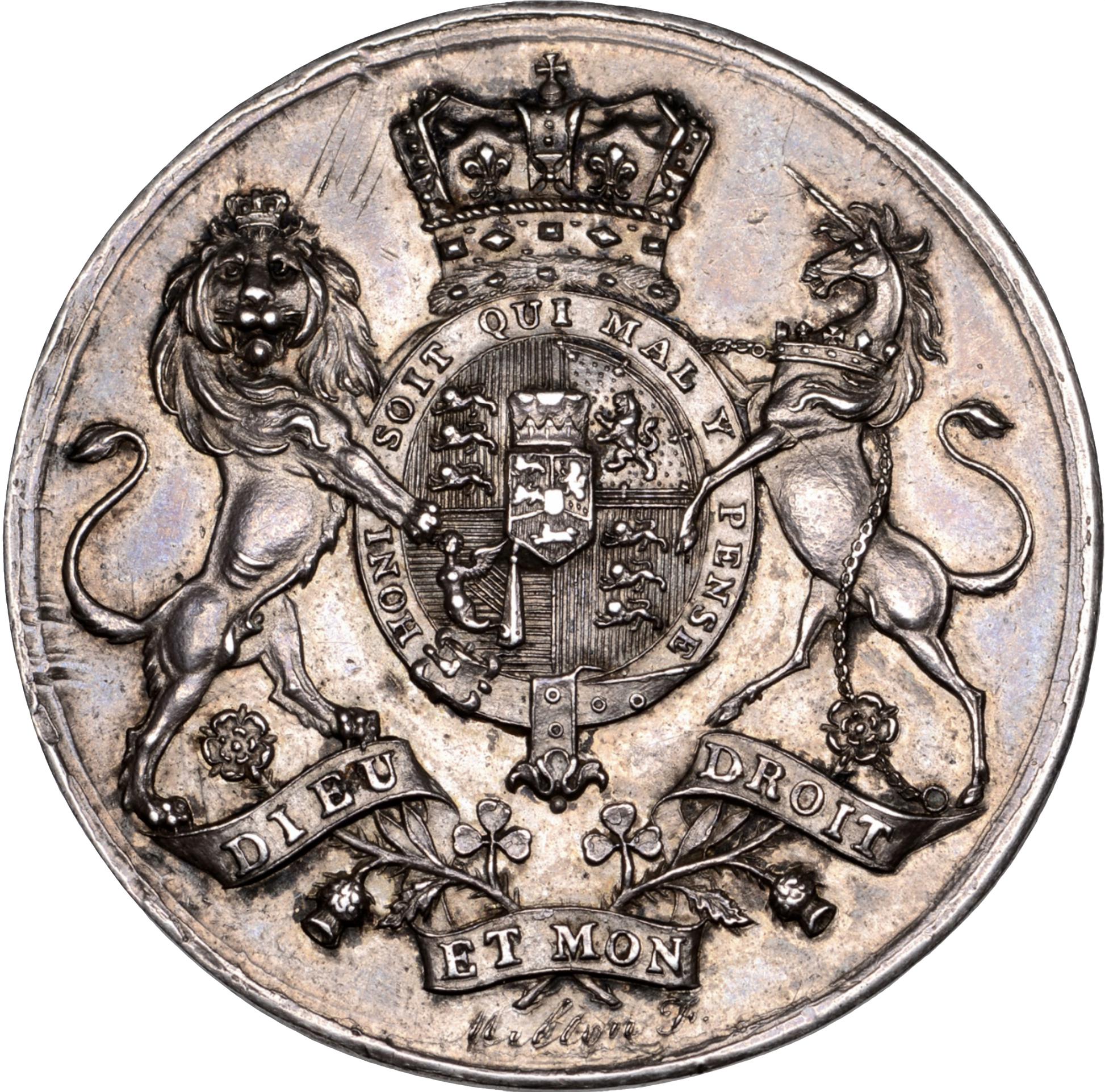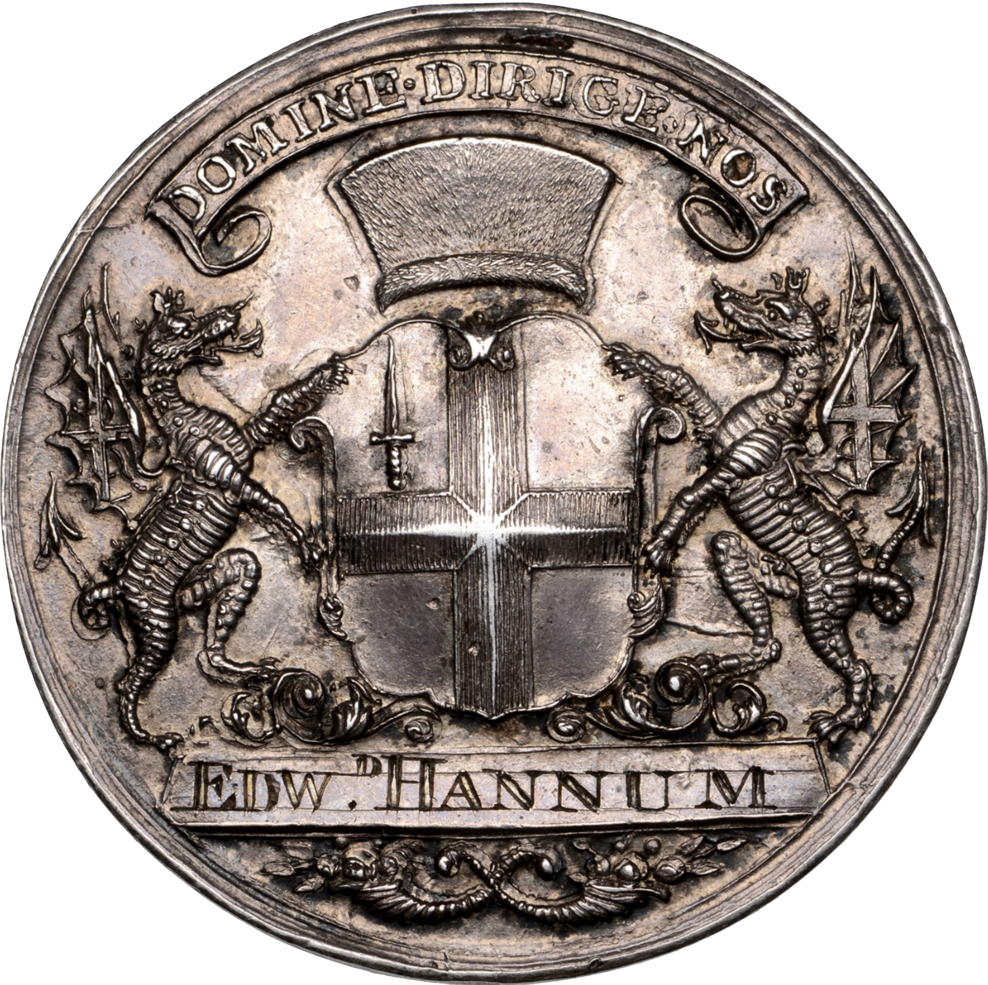 Rev: Arms and motto of the City of London, broker's named in the panel.