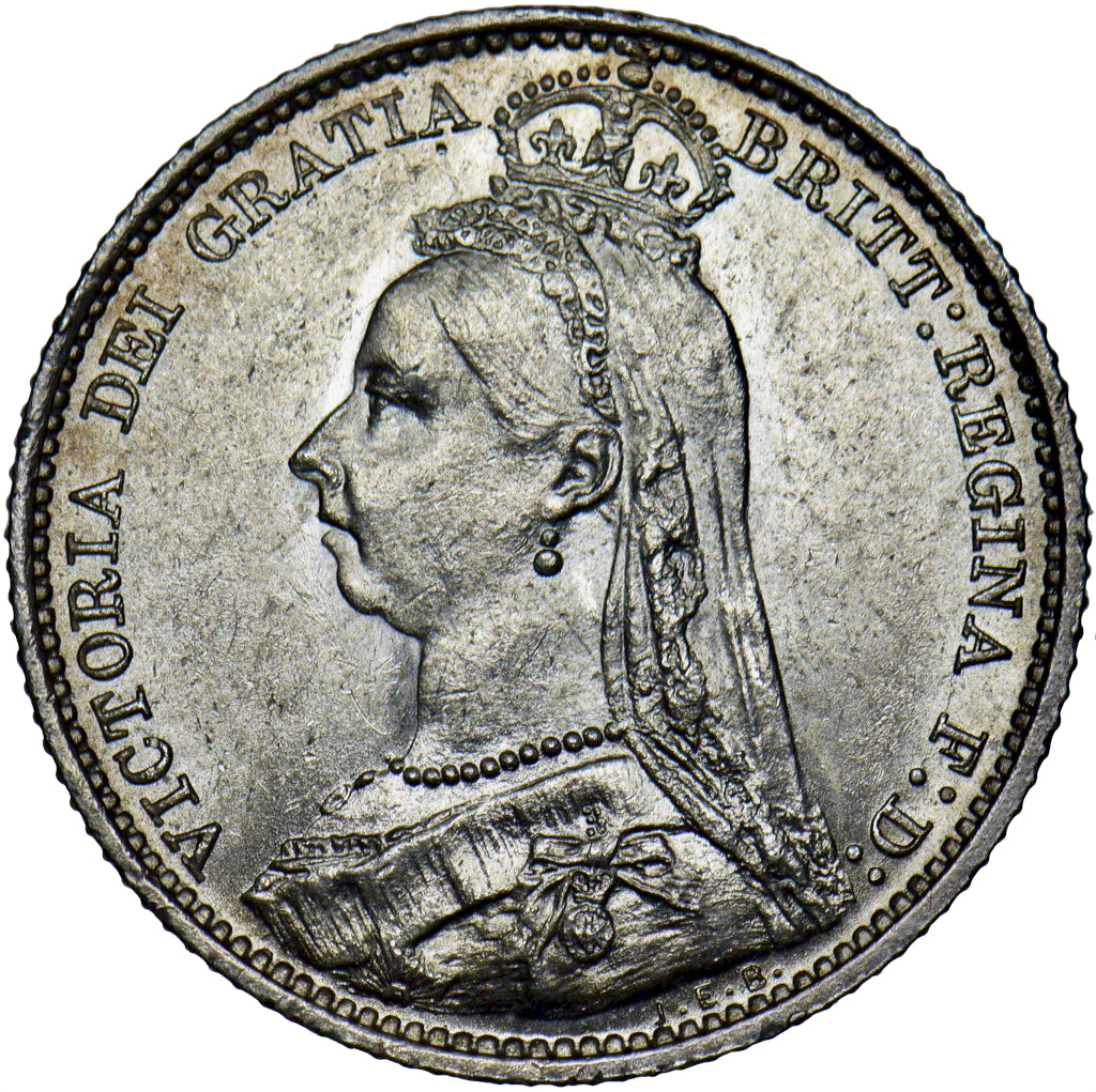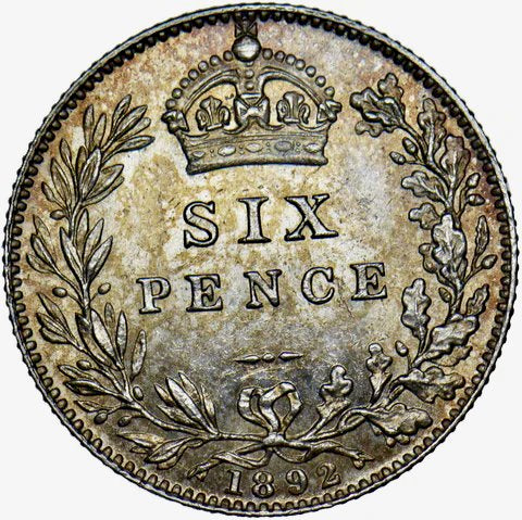 1892 Sixpence Jubilee head S3929 ESC 3283 UNC