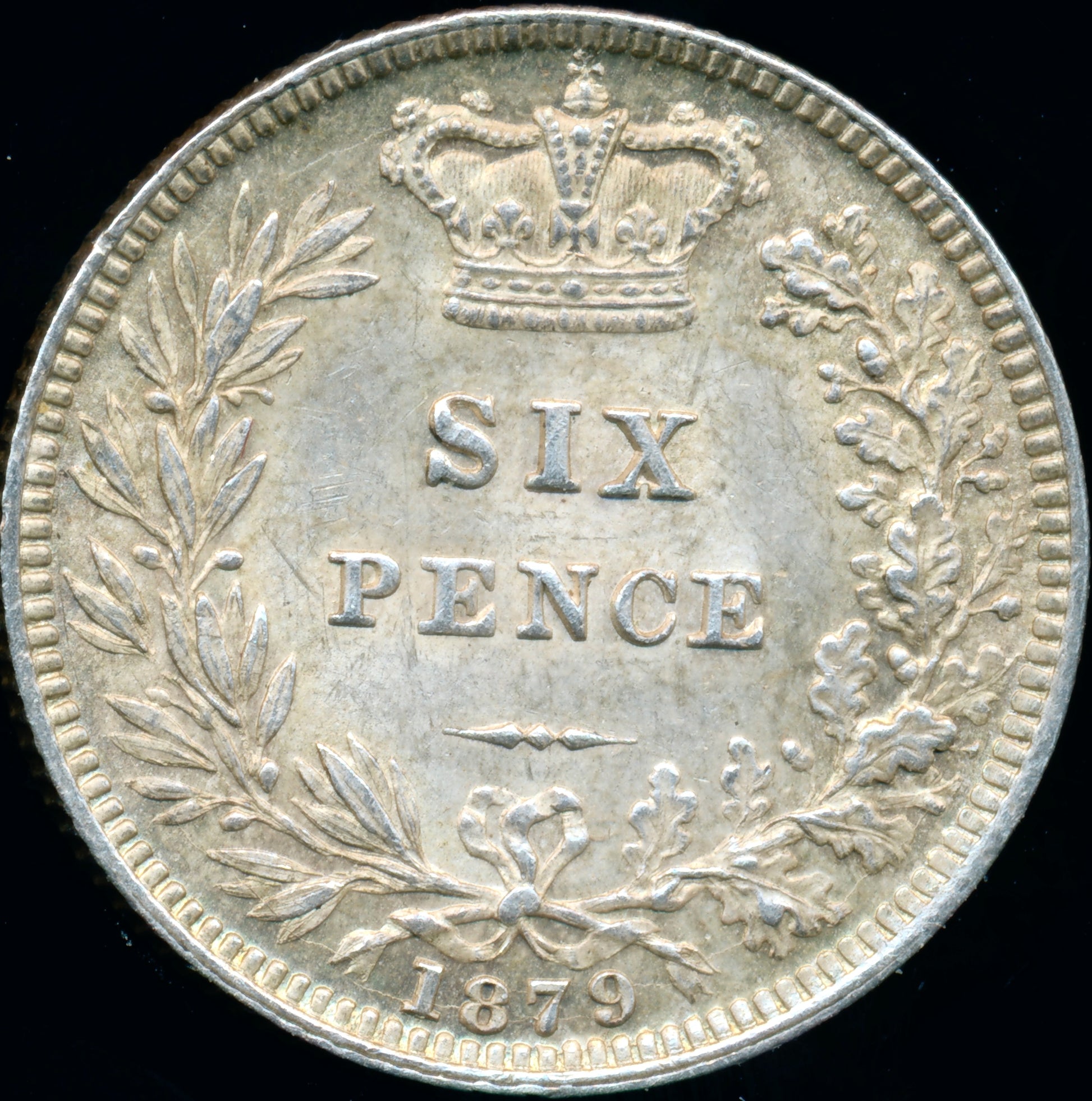 1879 Sixpence Second young head No die number S3911 ESC 3244 Rare UNC