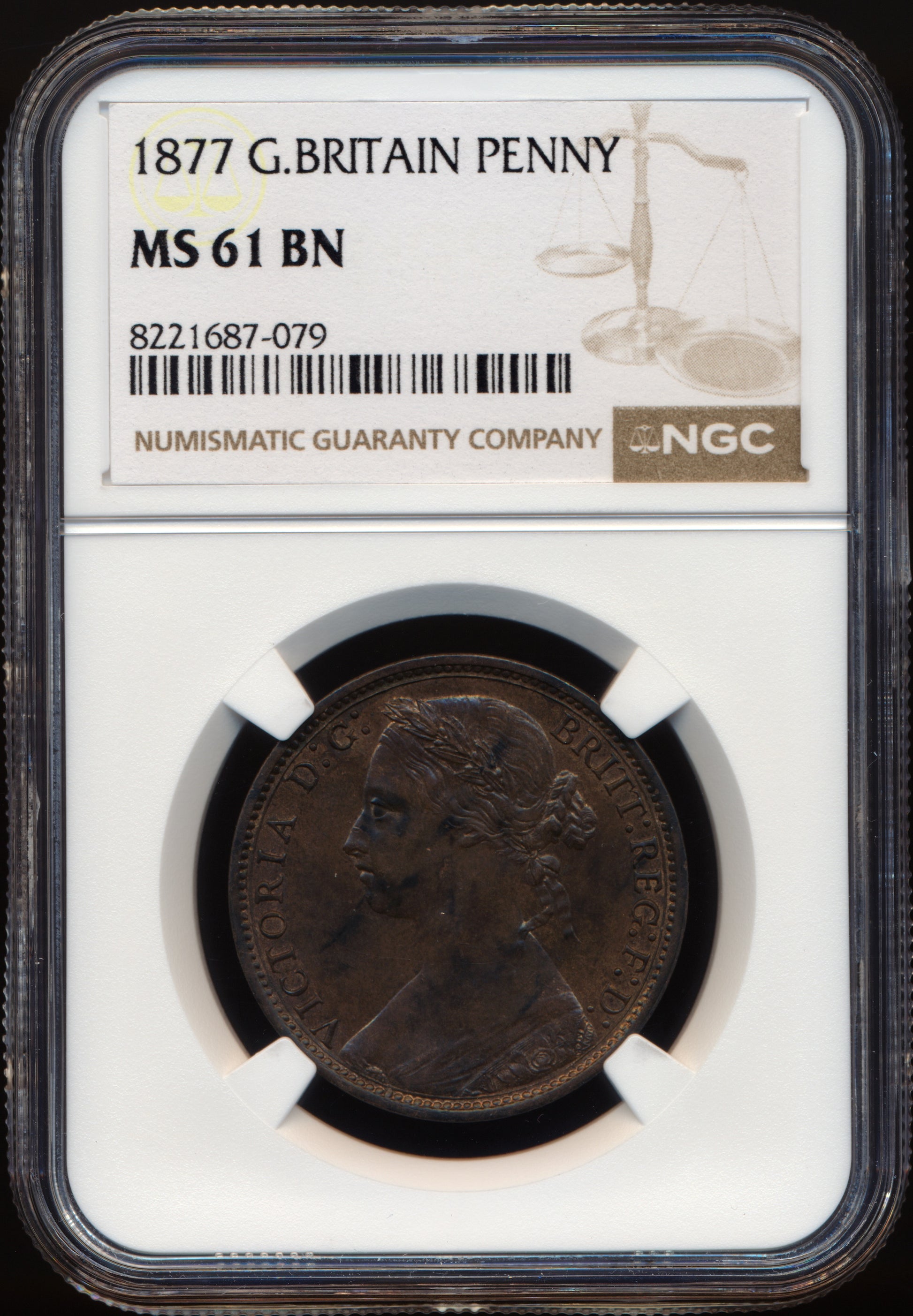 1877 Penny F91 Obv 8 Rev J UNC MS61