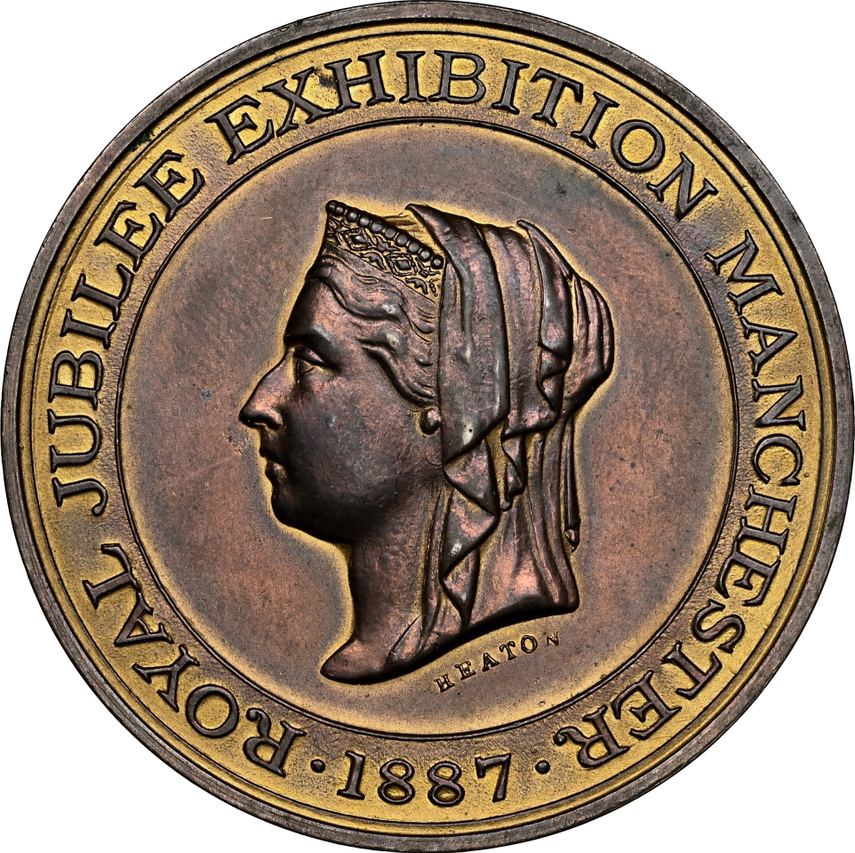 1887 Golden Jubilee BHM 3346 Manchester Exhibition 43mm bronze medal in box of issue by Heaton