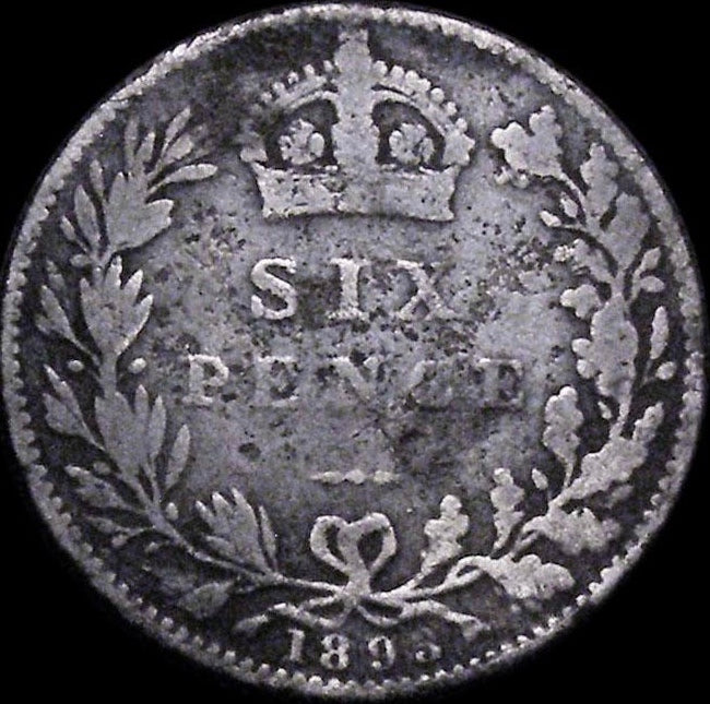1893 Sixpence Jubilee head S3929 ESC 3284 Extremely rare (R3) VG