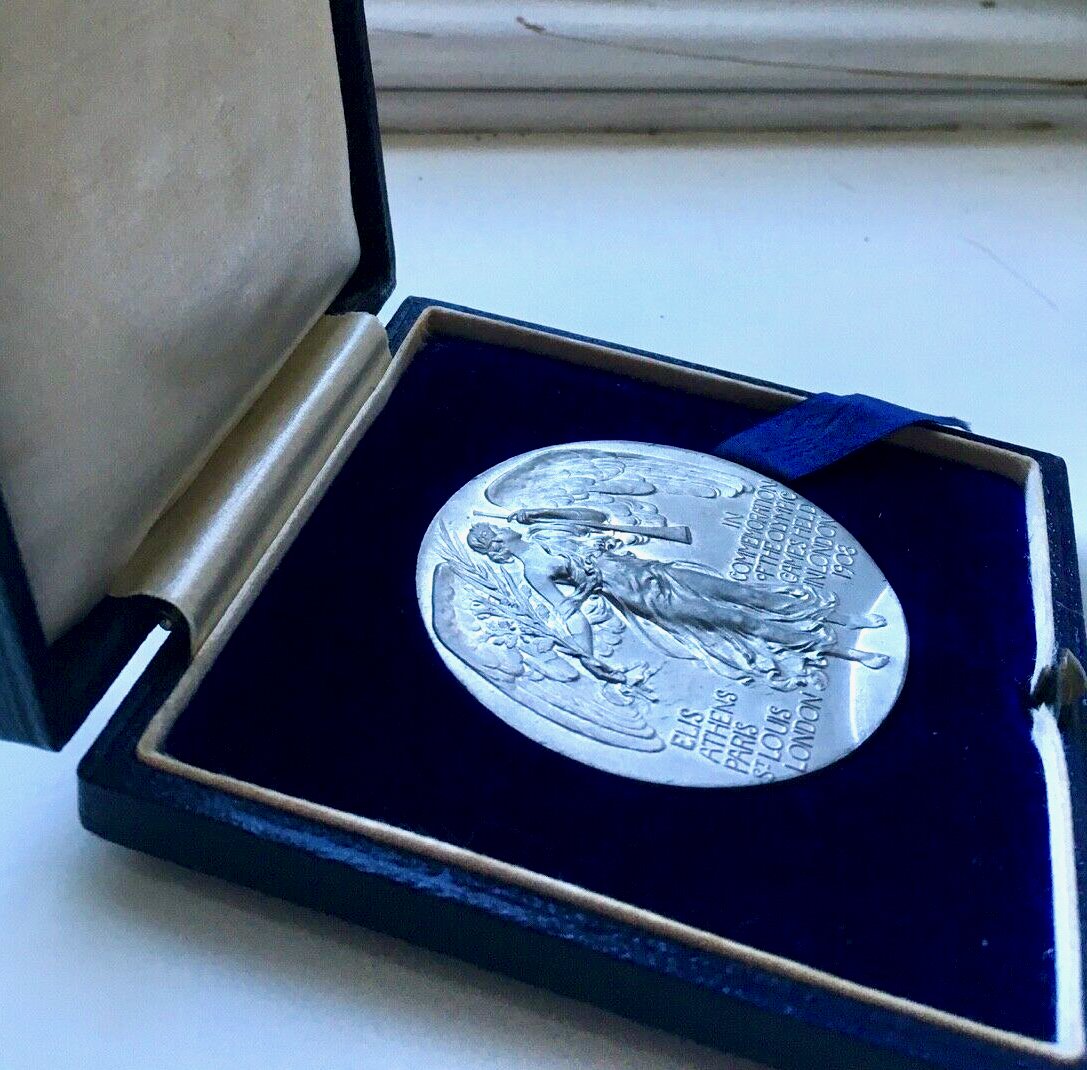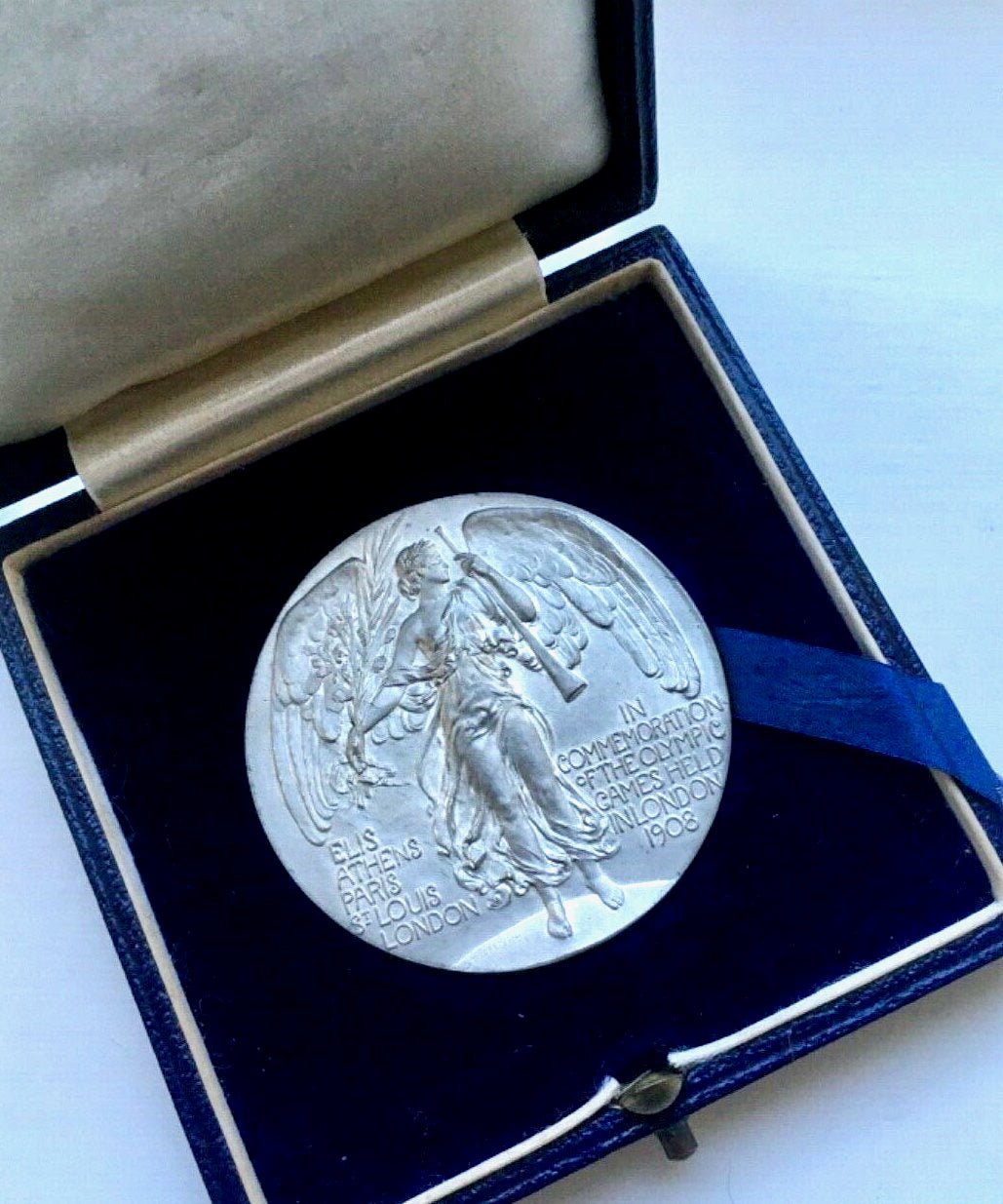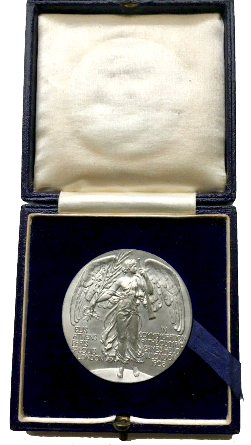 1908 London Olympics 50mm boxed participation medal in white metal BHM 3963 E1904