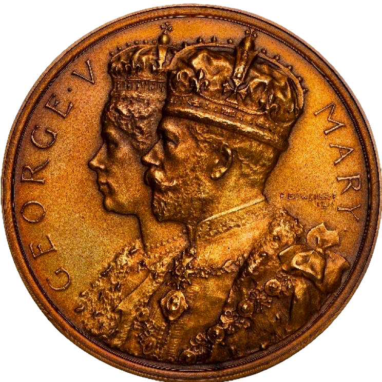 Obverse: Conjoined, crowned, draped bust of George V and Queen Mary, left.