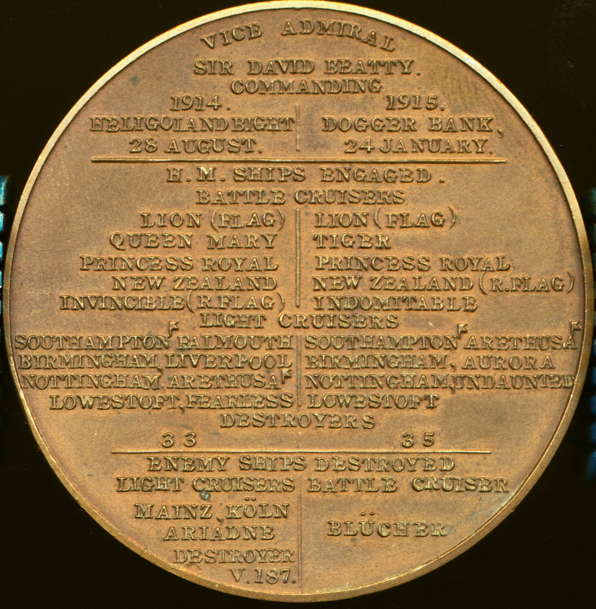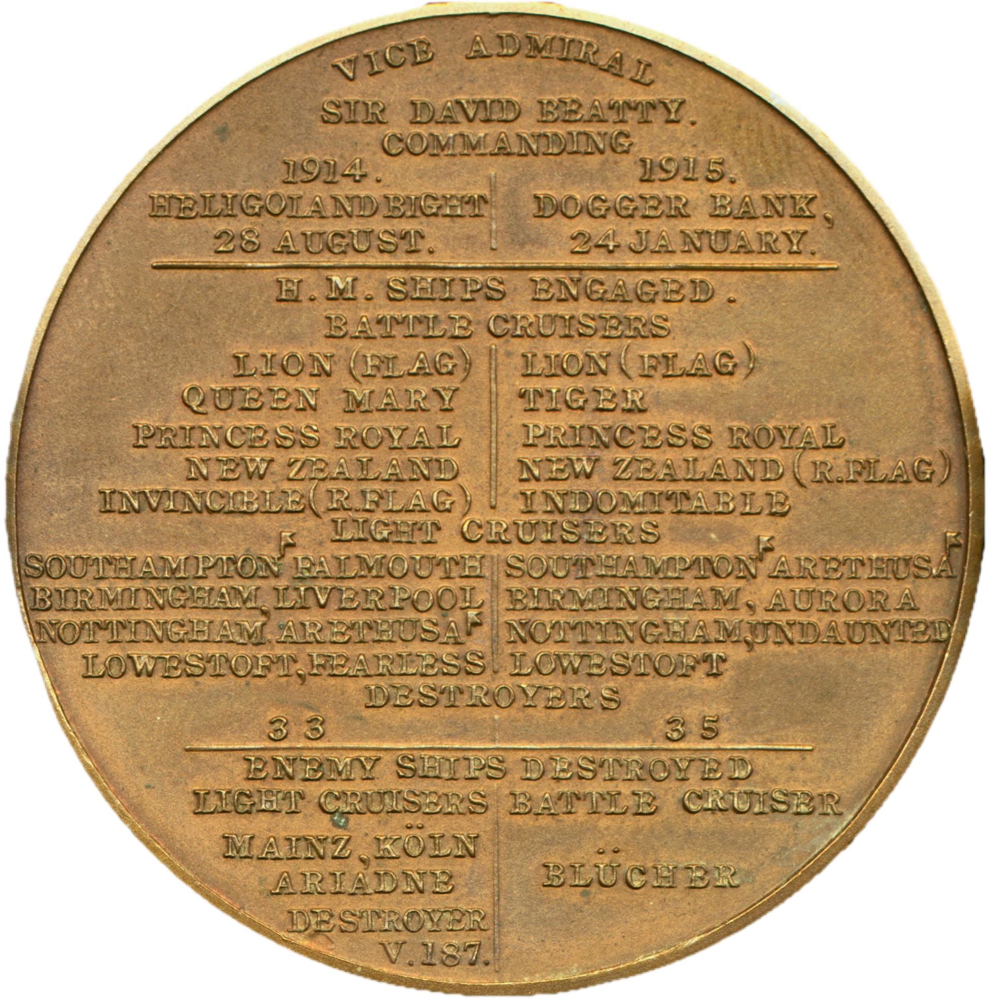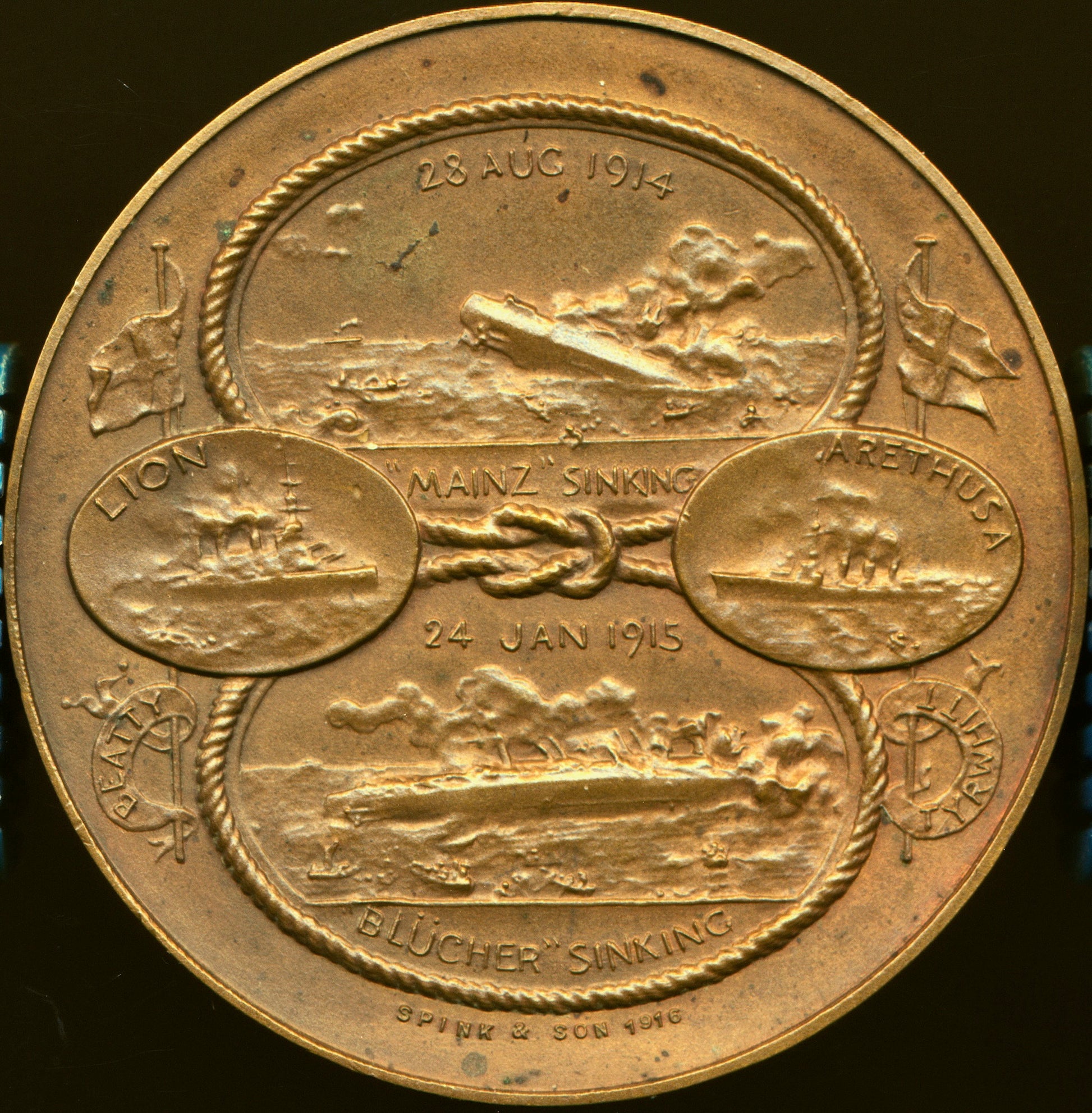 1914 Naval action at Heligoland Bight and 1915 at Dogger Bank 45mm bronze medal BHM 4117 E1940
