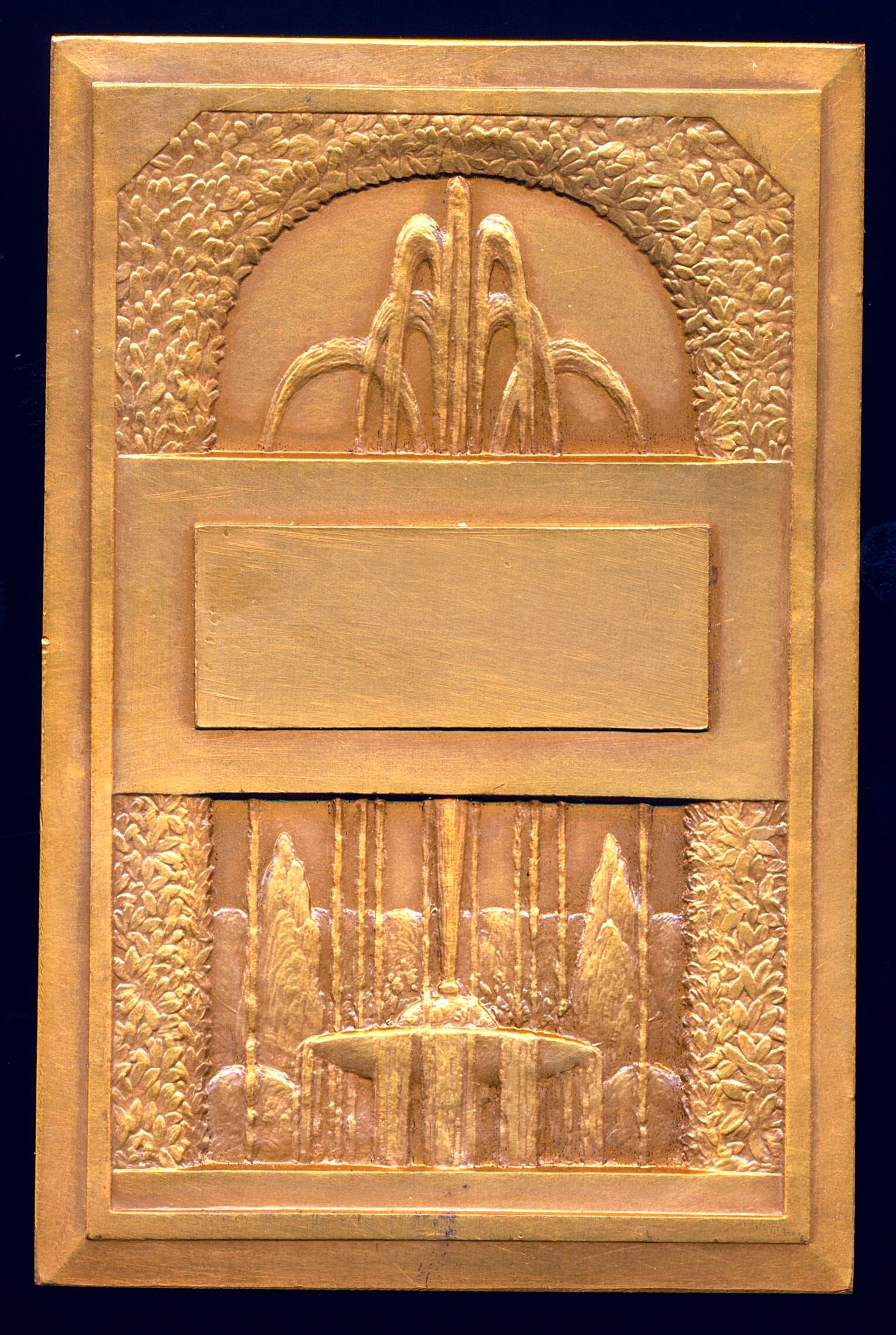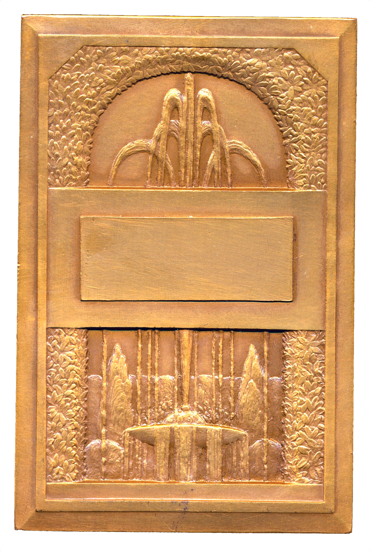 Rev: Large fountain seen through an archway (flower covered portal), a tablet or cartouche for engraving in centre
