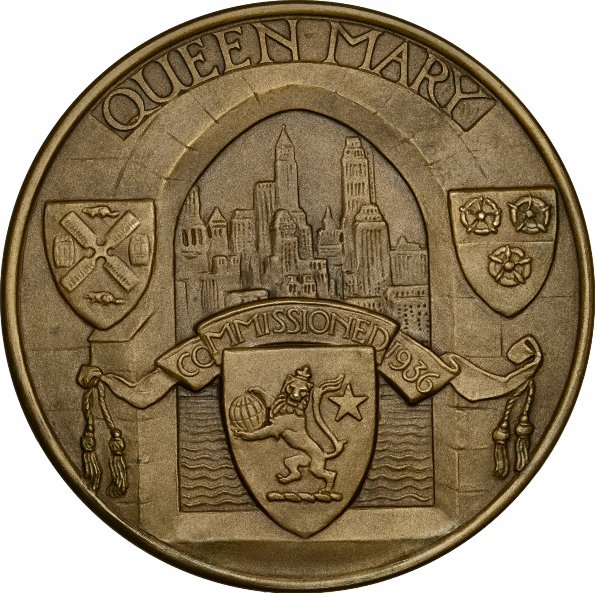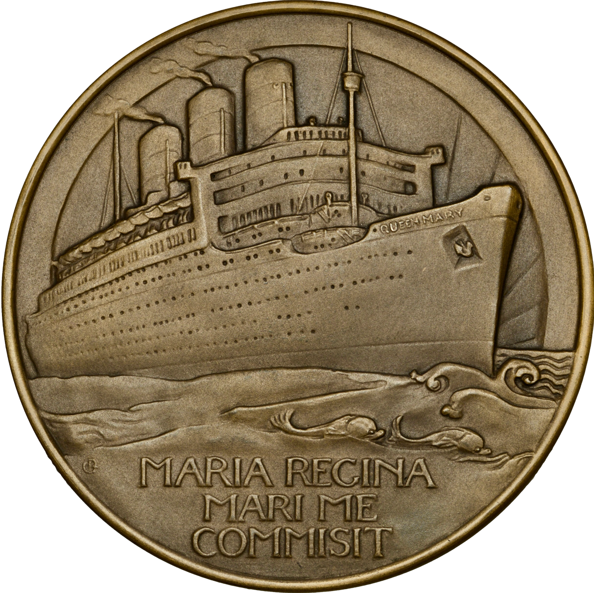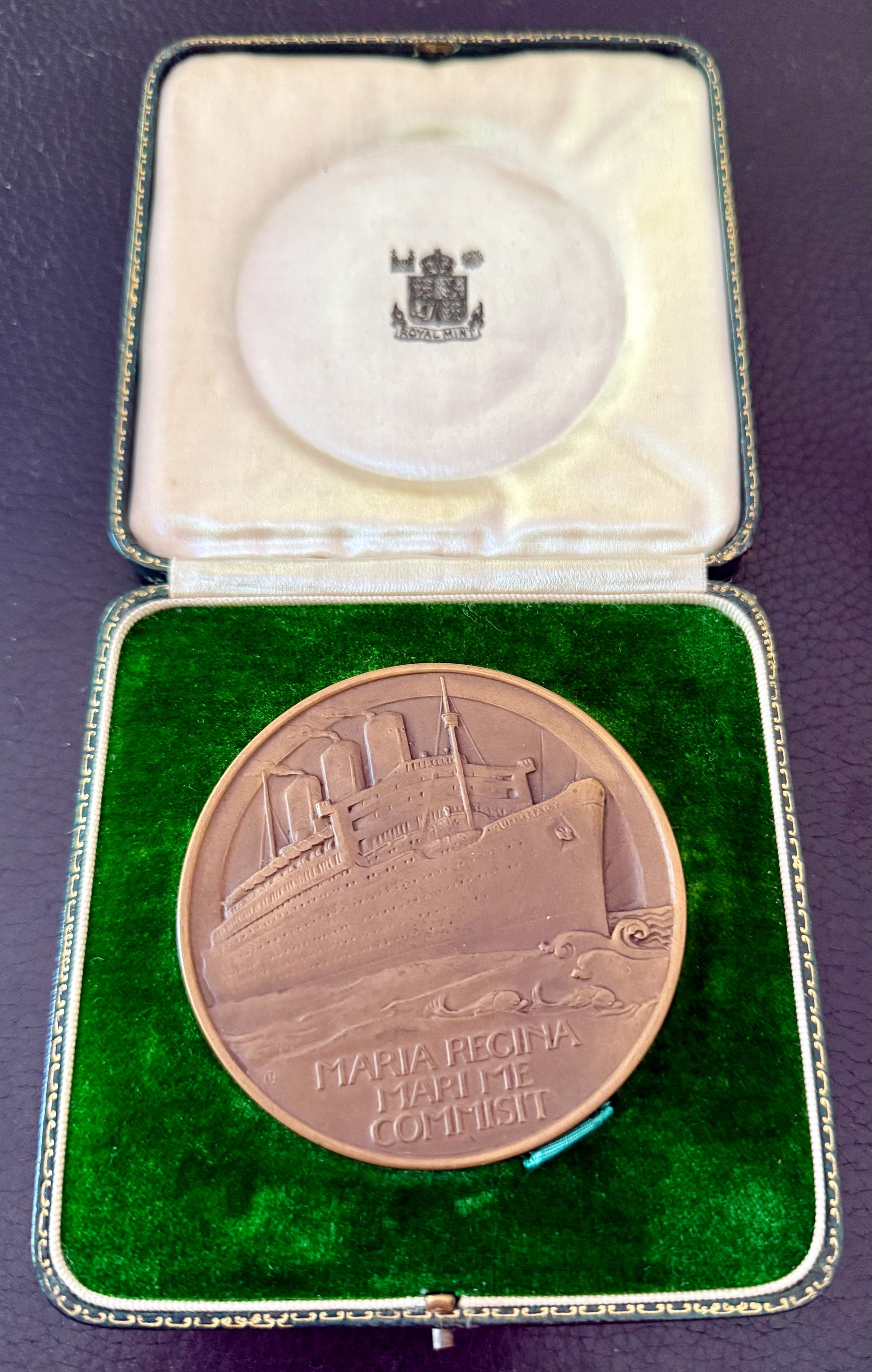 1936 RMS Queen Mary, Maiden Voyage 70mm bronze medal in box of issue
