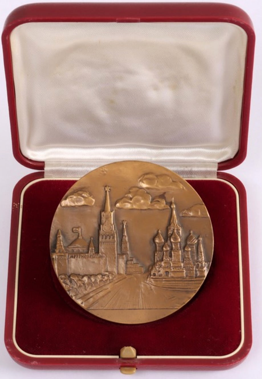 1980 RUSSIA Olympic Games Moscow 60 mm bronze Participants Medal in box of issue