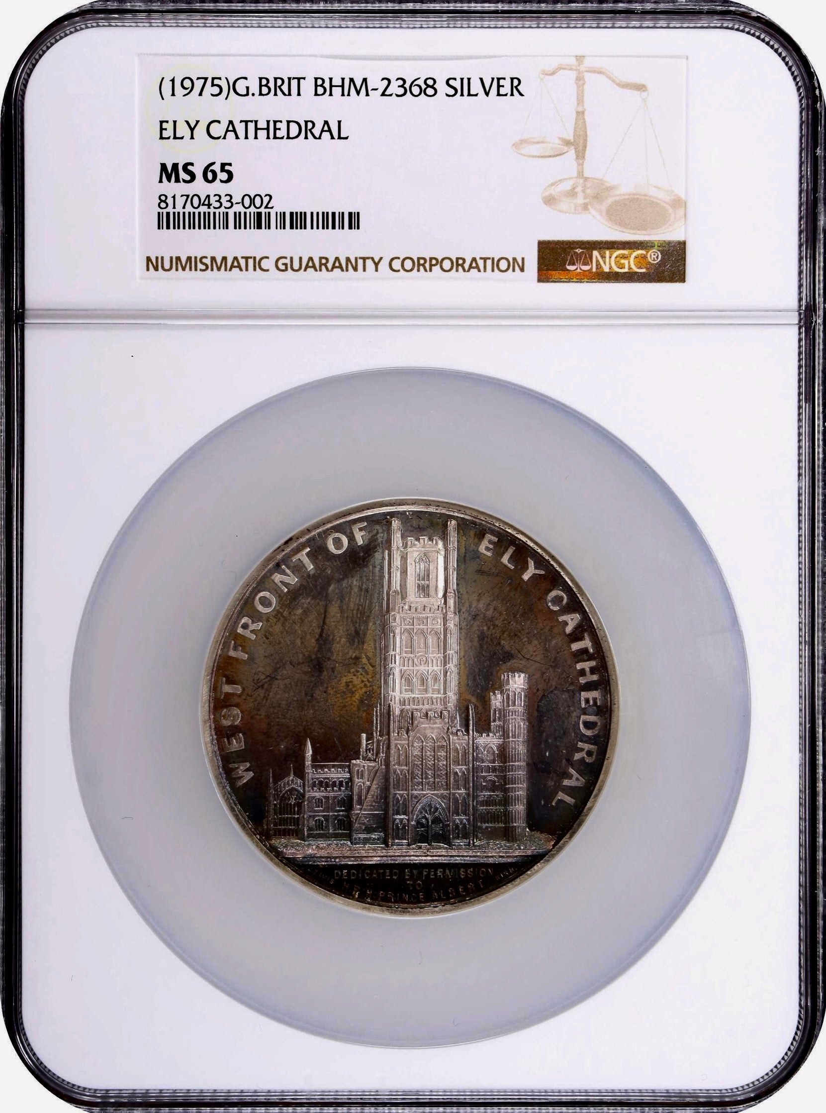 1975 Ely Cathedral 61mm silver medal (original dies by J Davis) BHM 2368 MS65