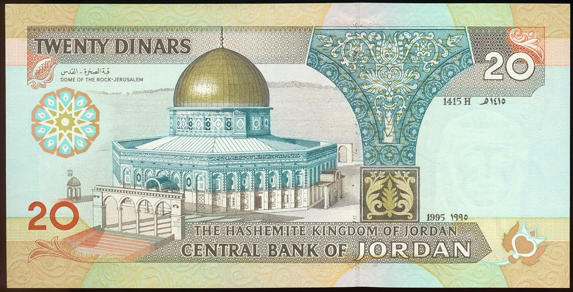 JORDAN P.32a 1995 20 Dinar UNC