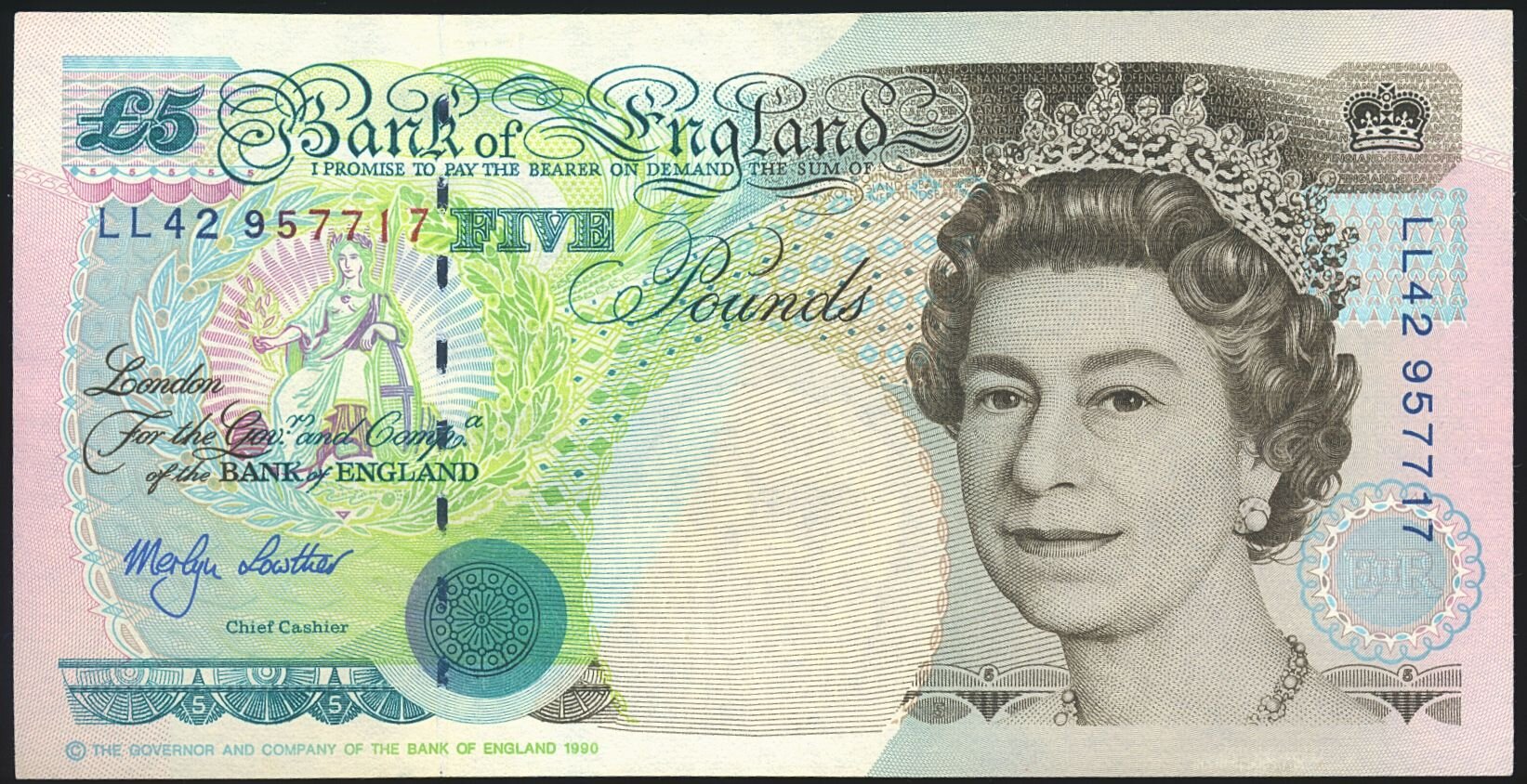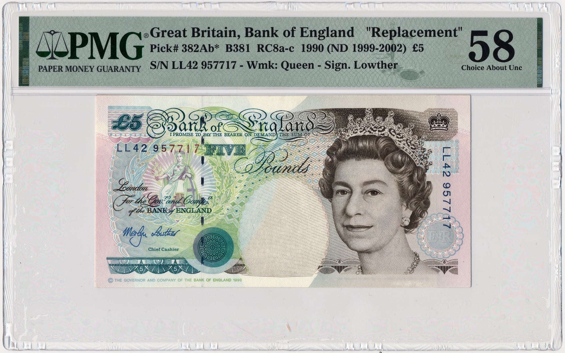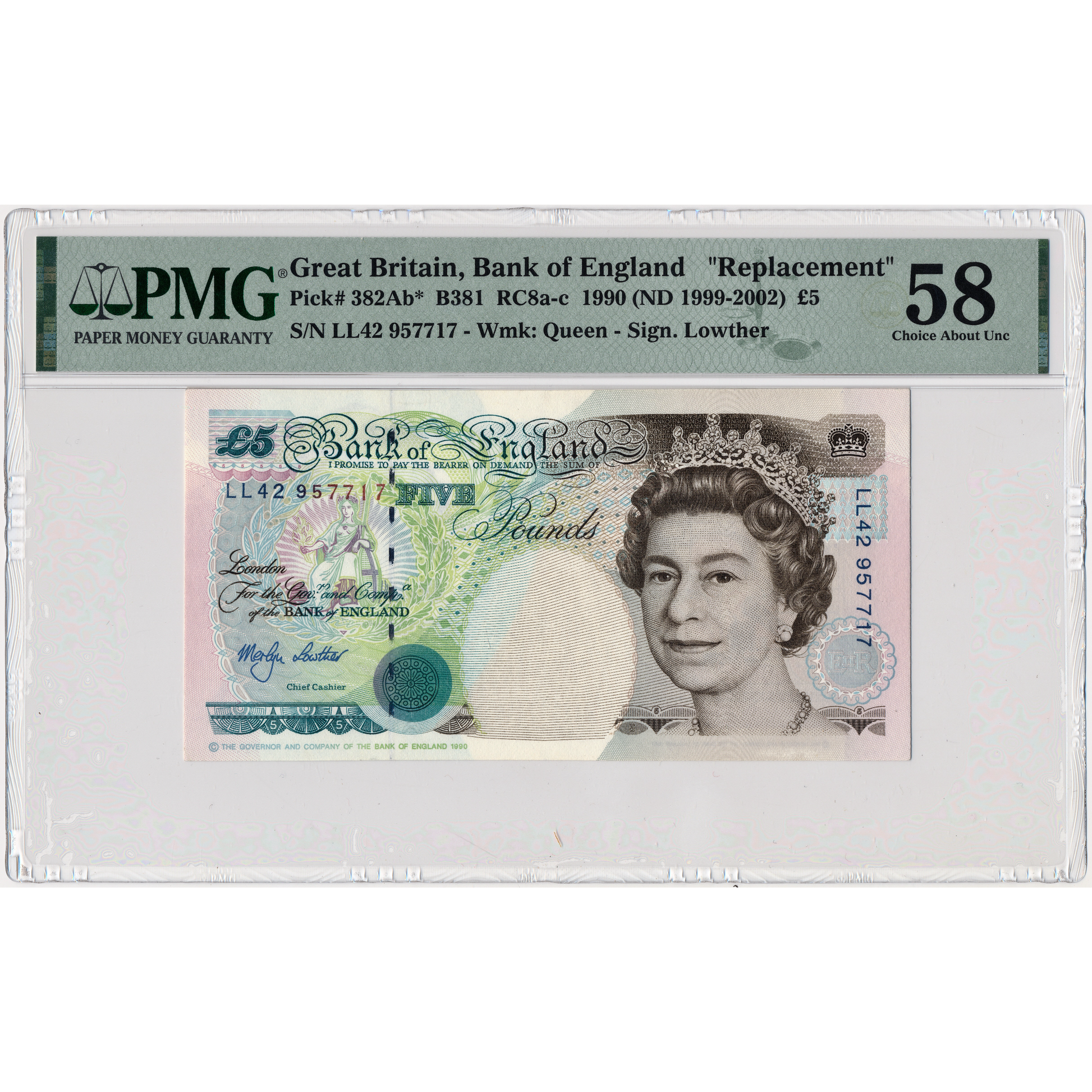 ENGLAND P.382Ab B381 1991-2002 Lowther £5 Replacement LL42 Choice AUNC 58