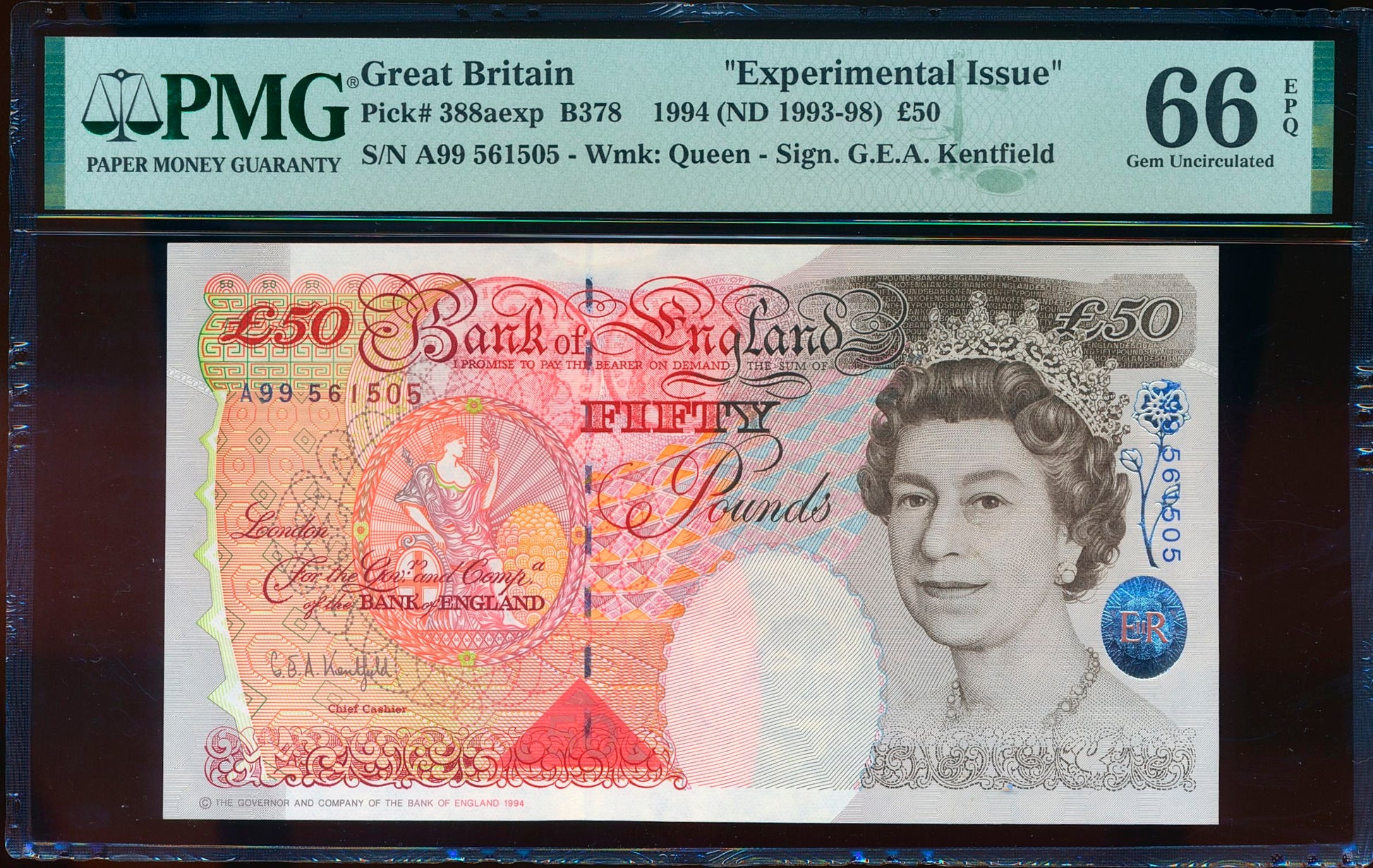 ENGLAND P.388a B378 1993-1998 Kentfield Experimental £50 A99 66EPQ GEM UNC