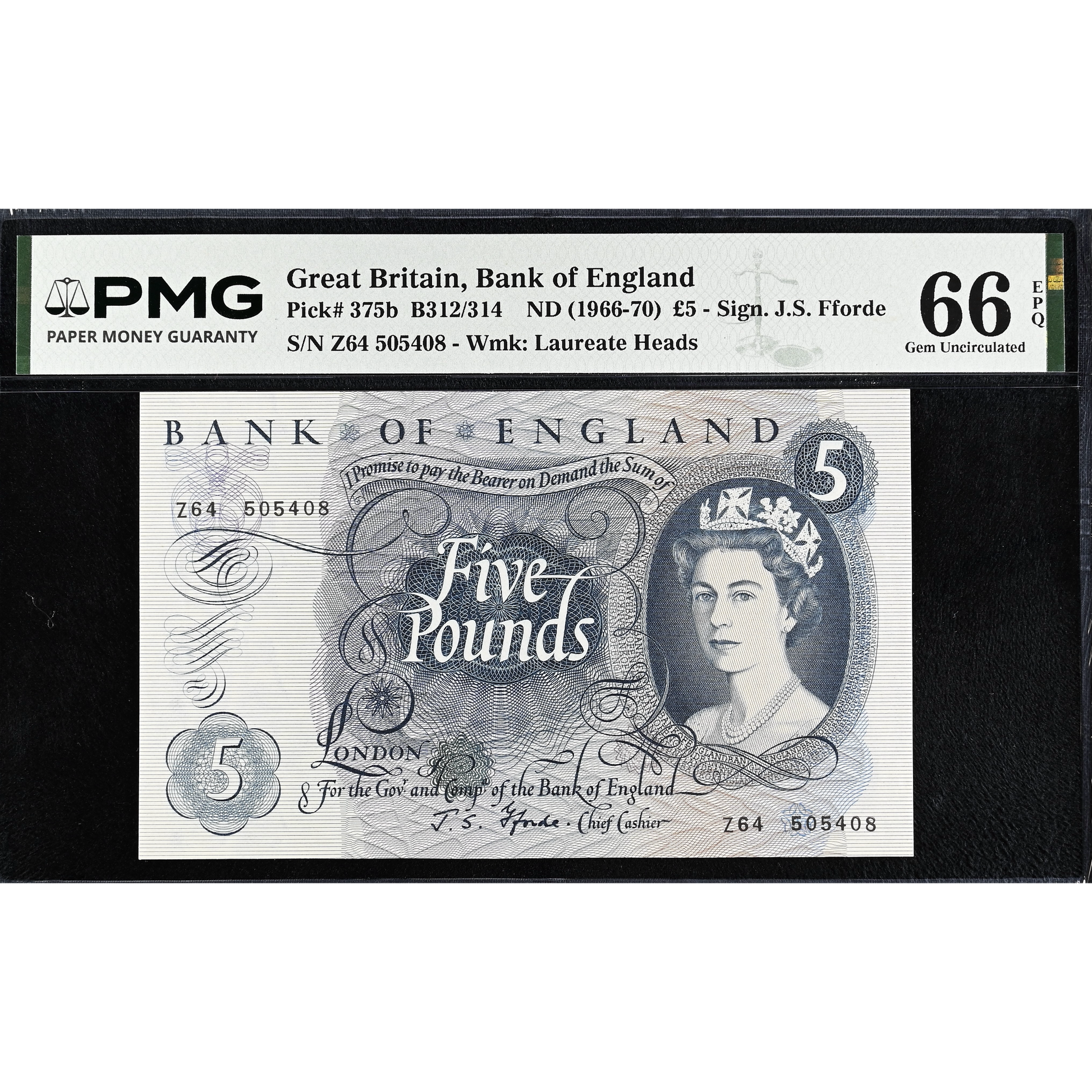 ENGLAND P.375b B312 1966-1970 Fforde £5 Last series Z64 Gem UNC 66 EPQ