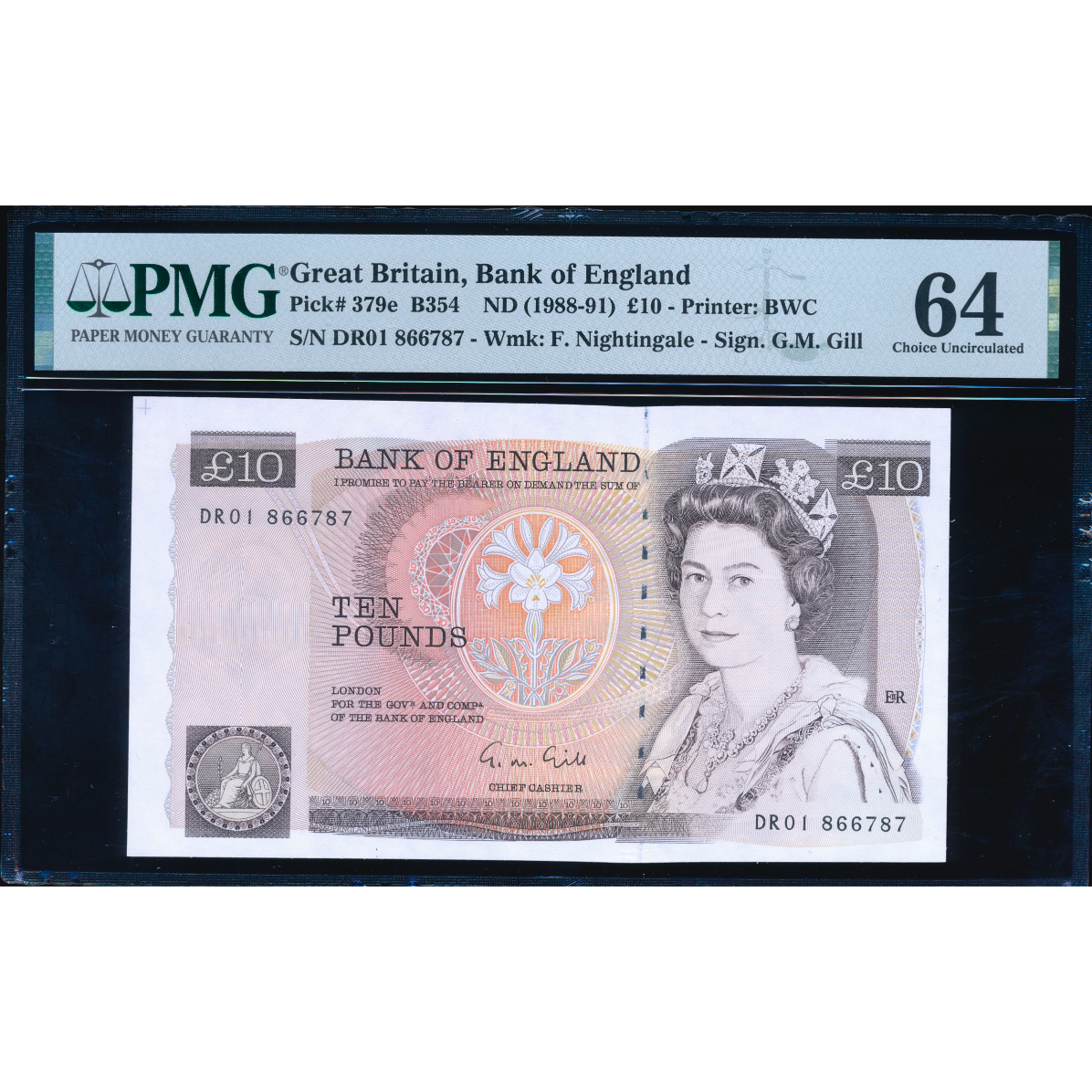 ENGLAND P.379e B354 1988-1991 Gill First run DR01 £10 CHOICE UNC 64 PMG