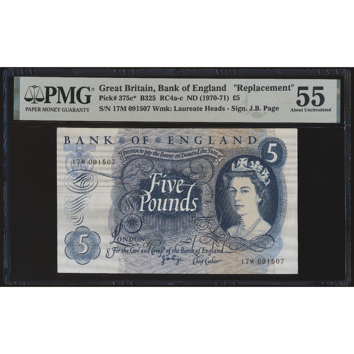 ENGLAND P.375c B325 1970-1971 Replacement Page £5 17M AUNC 55