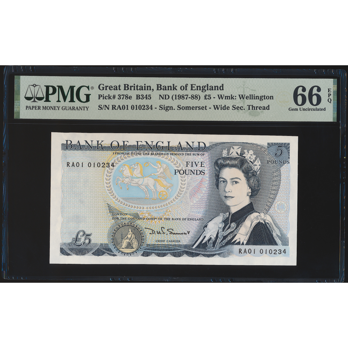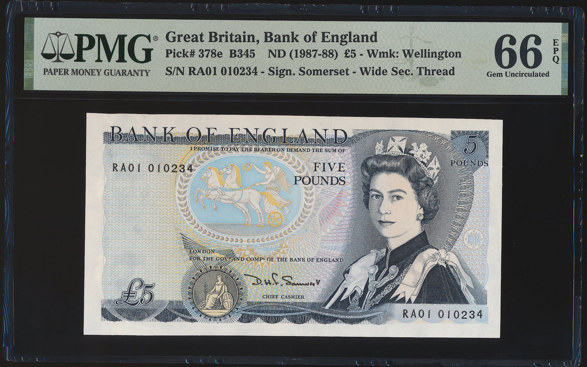 ENGLAND P.378e B345 1987-1988 Somerset First run £5 RA01 GEM UNC 65 EPQ
