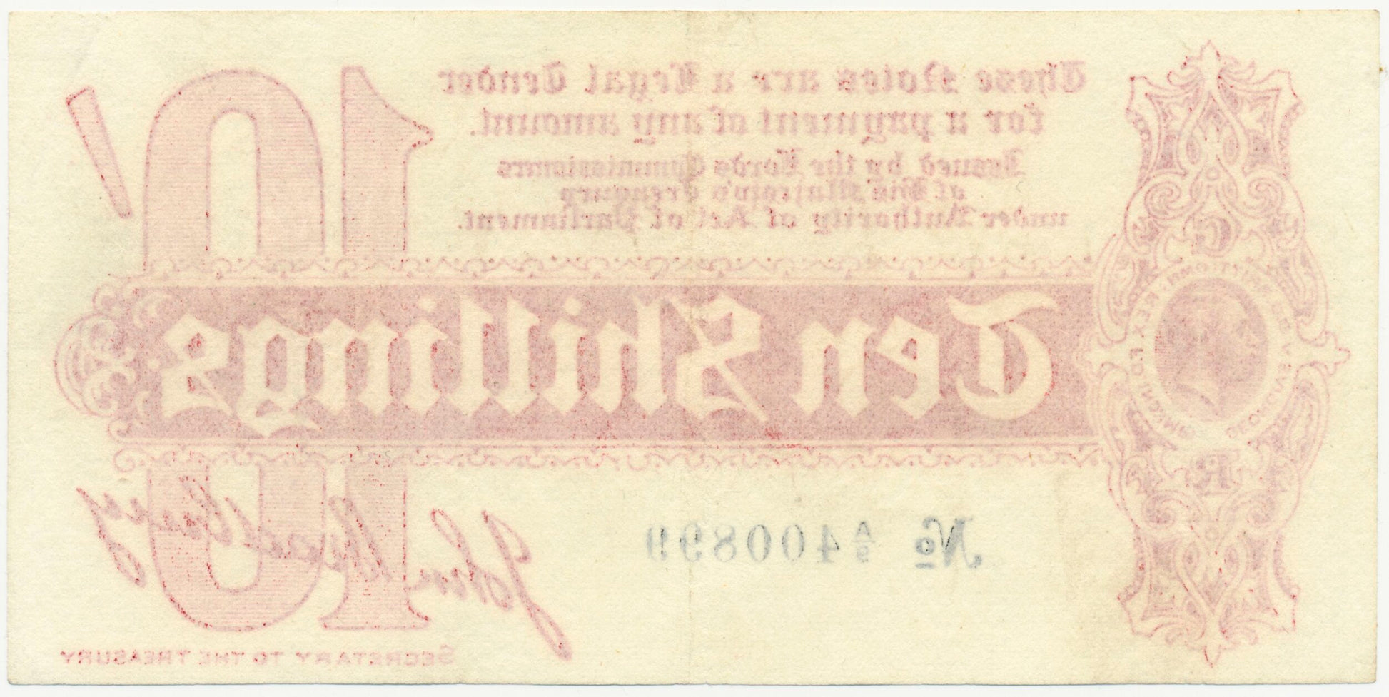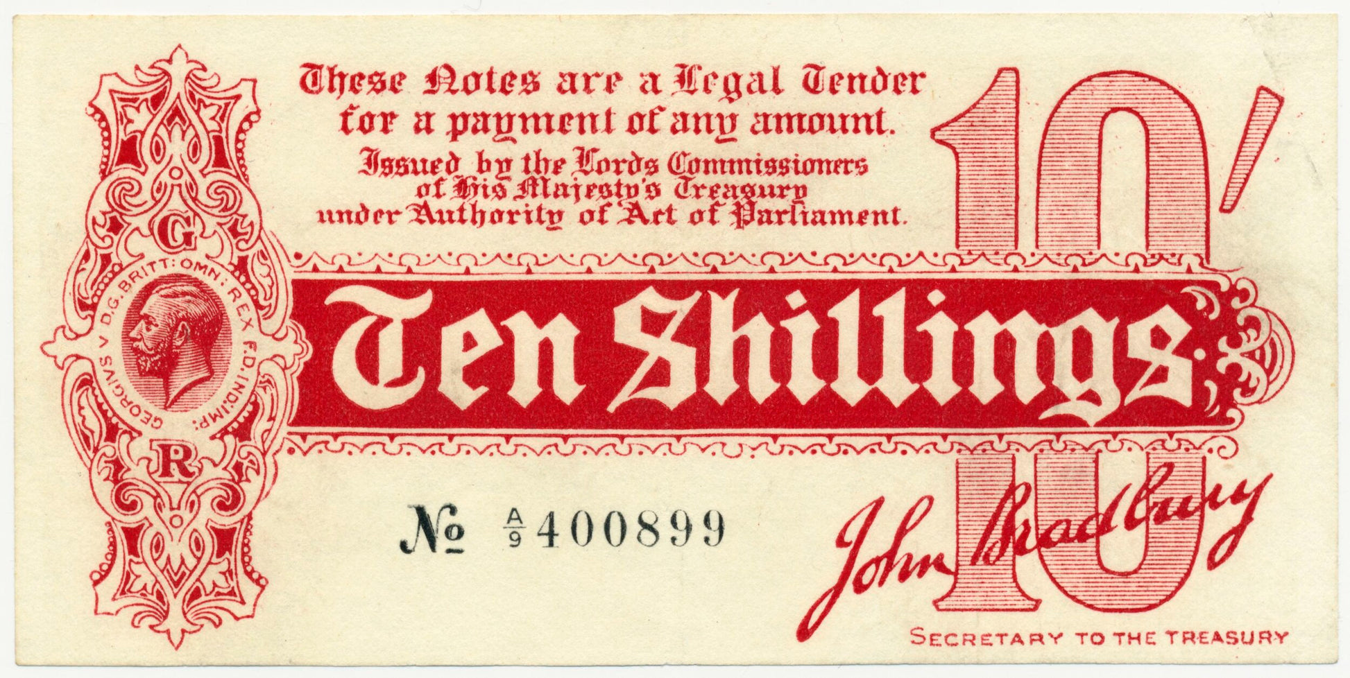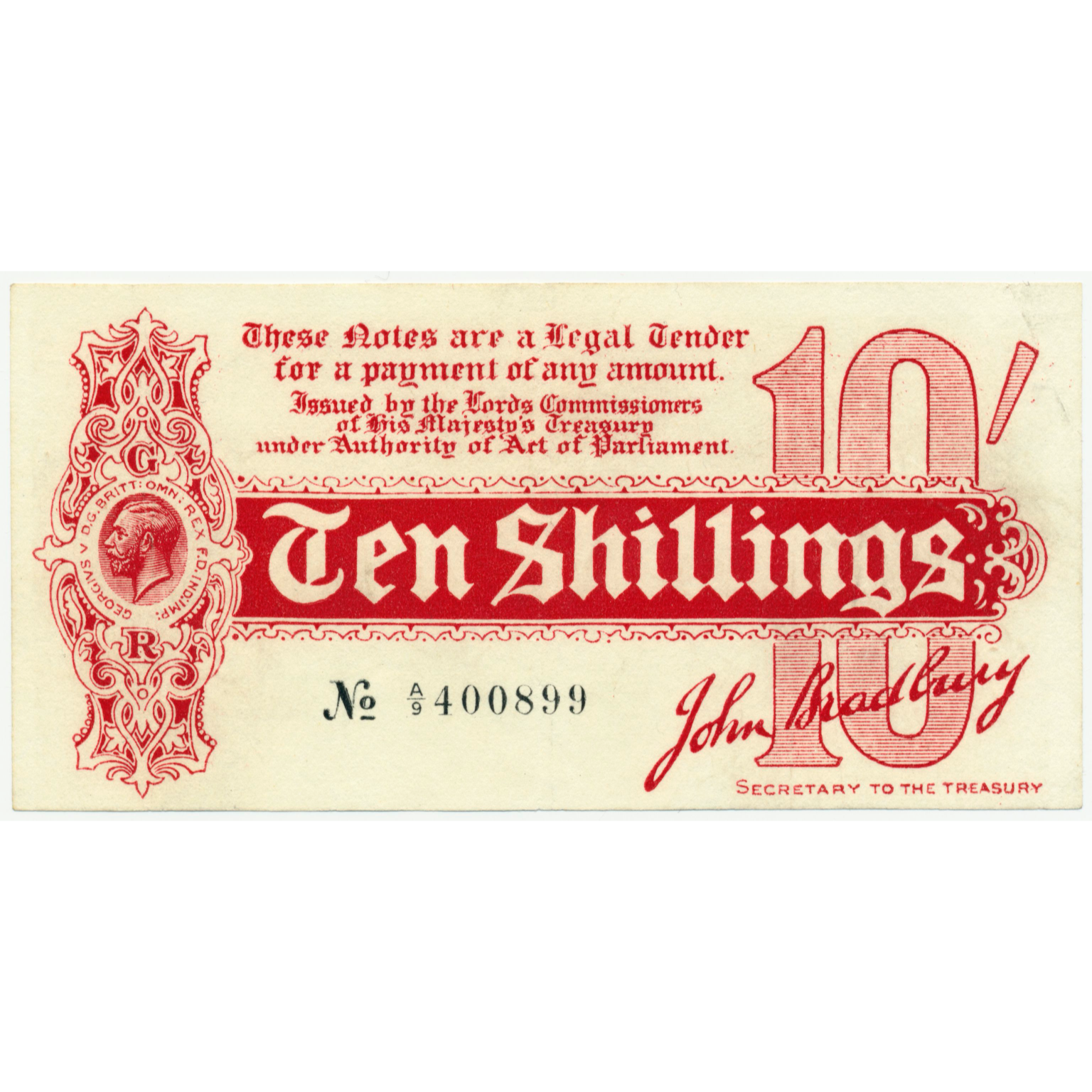 ENGLAND P.346 T9 1914 HM Treasury 1914 Bradbury 10s GVF A/9