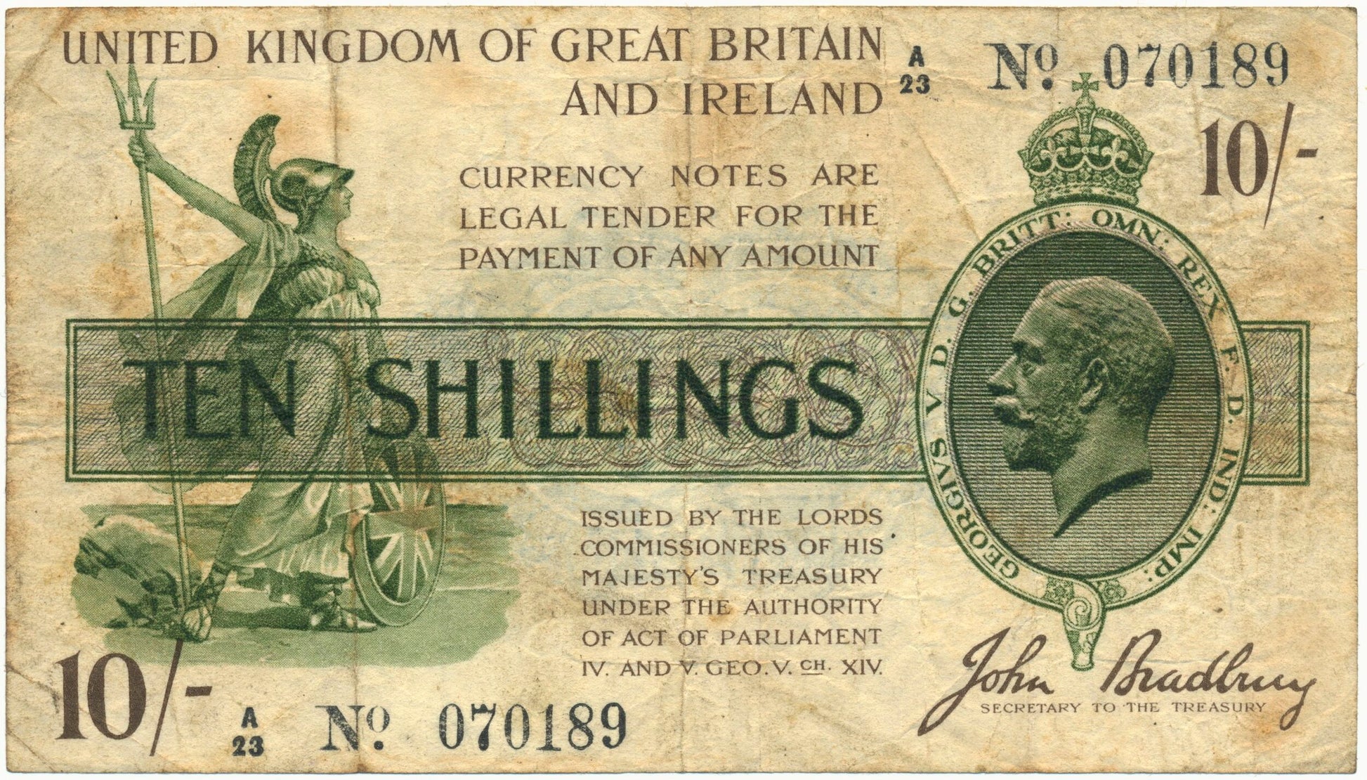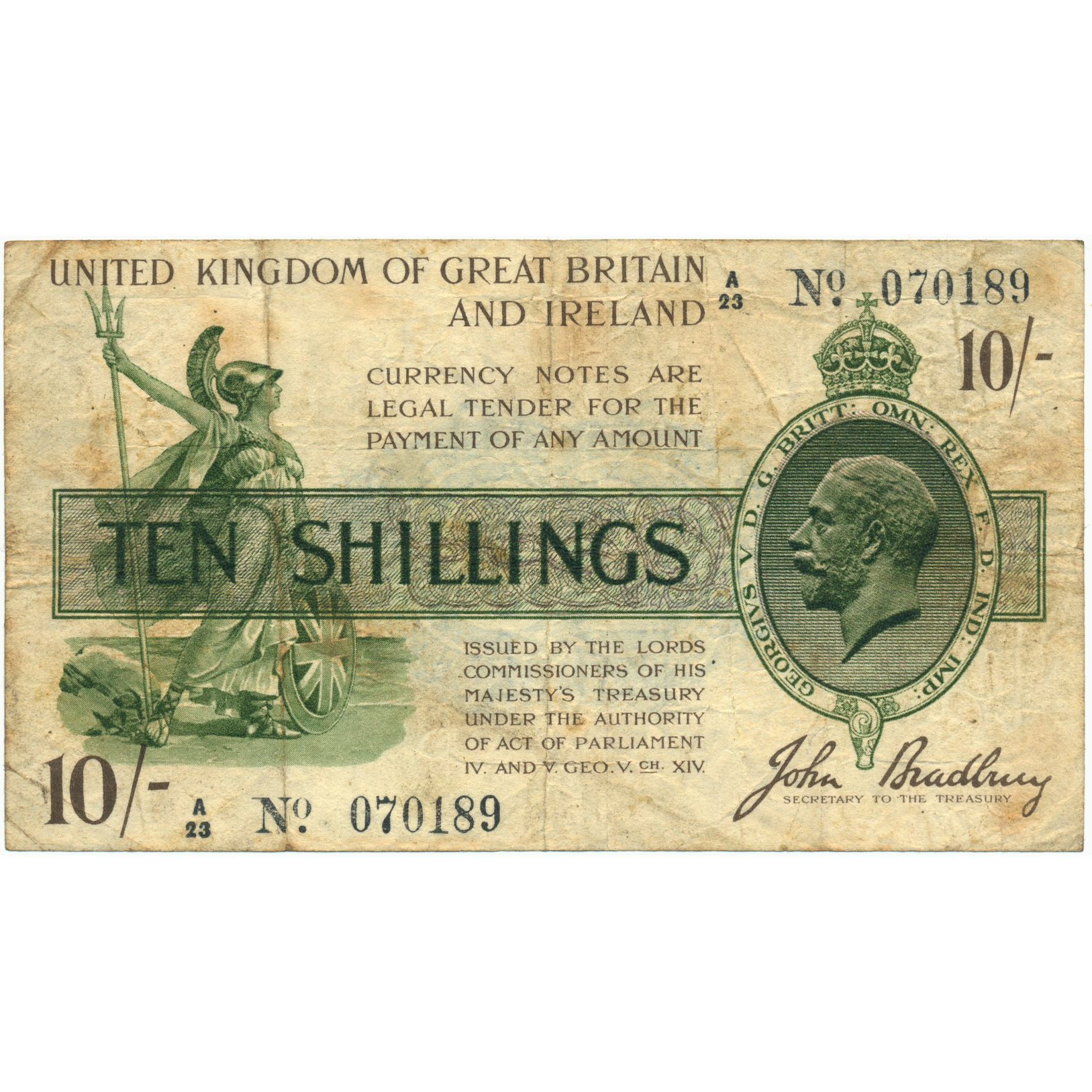 ENGLAND P.350 T17 1918 HM Treasury Bradbury 10s F A23
