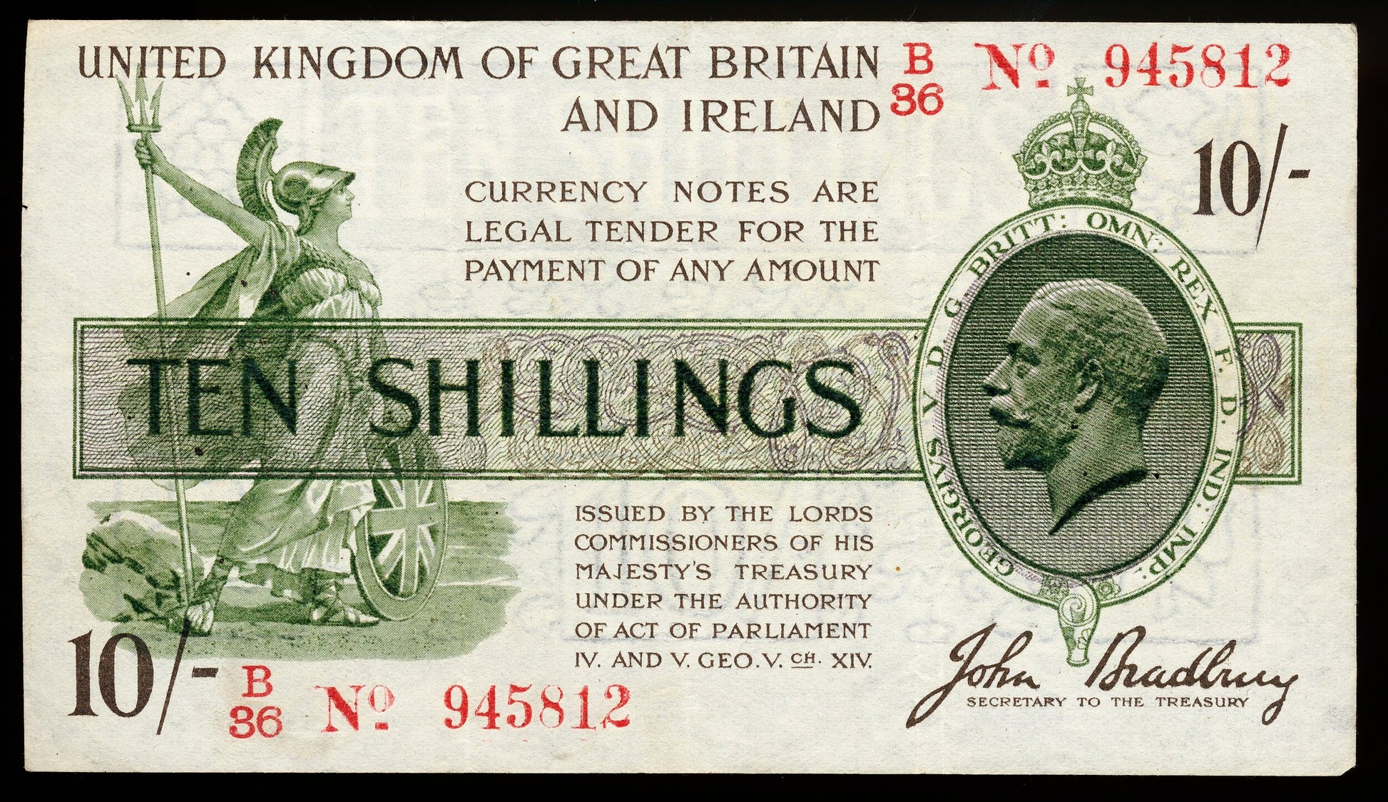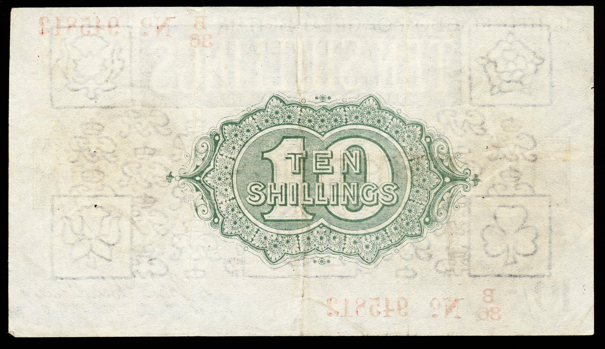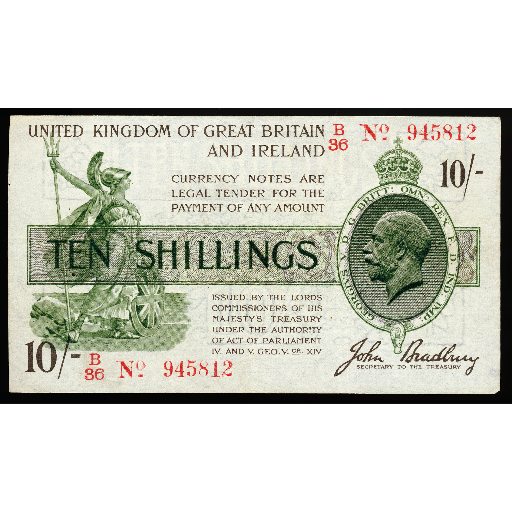 ENGLAND P.350b T20 1918 HM Treasury Bradbury 10s B36 VF30