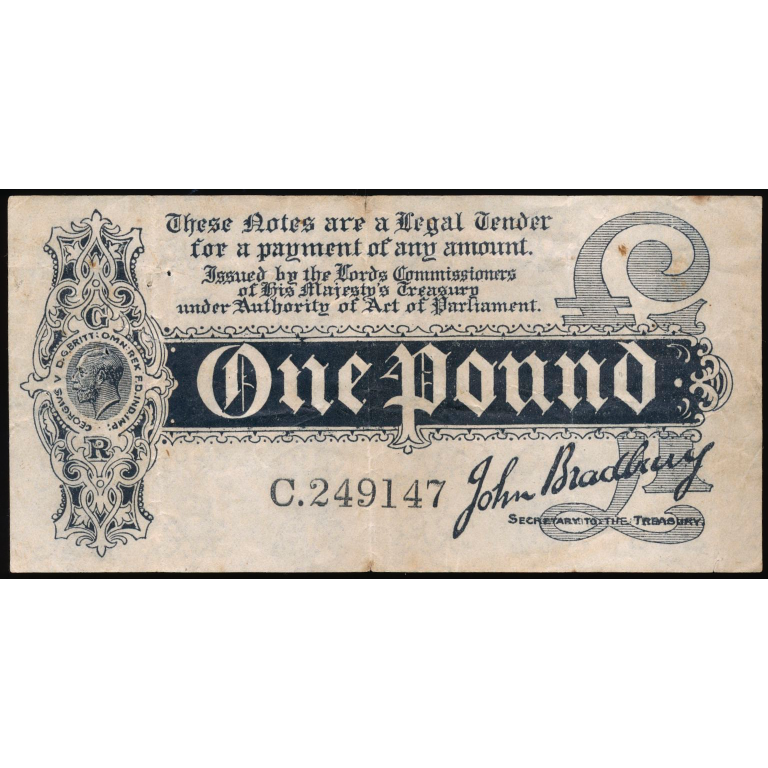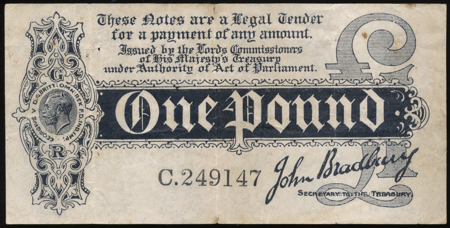 ENGLAND P.347 T1 1914 HM Treasury Bradbury First issue £1 F C