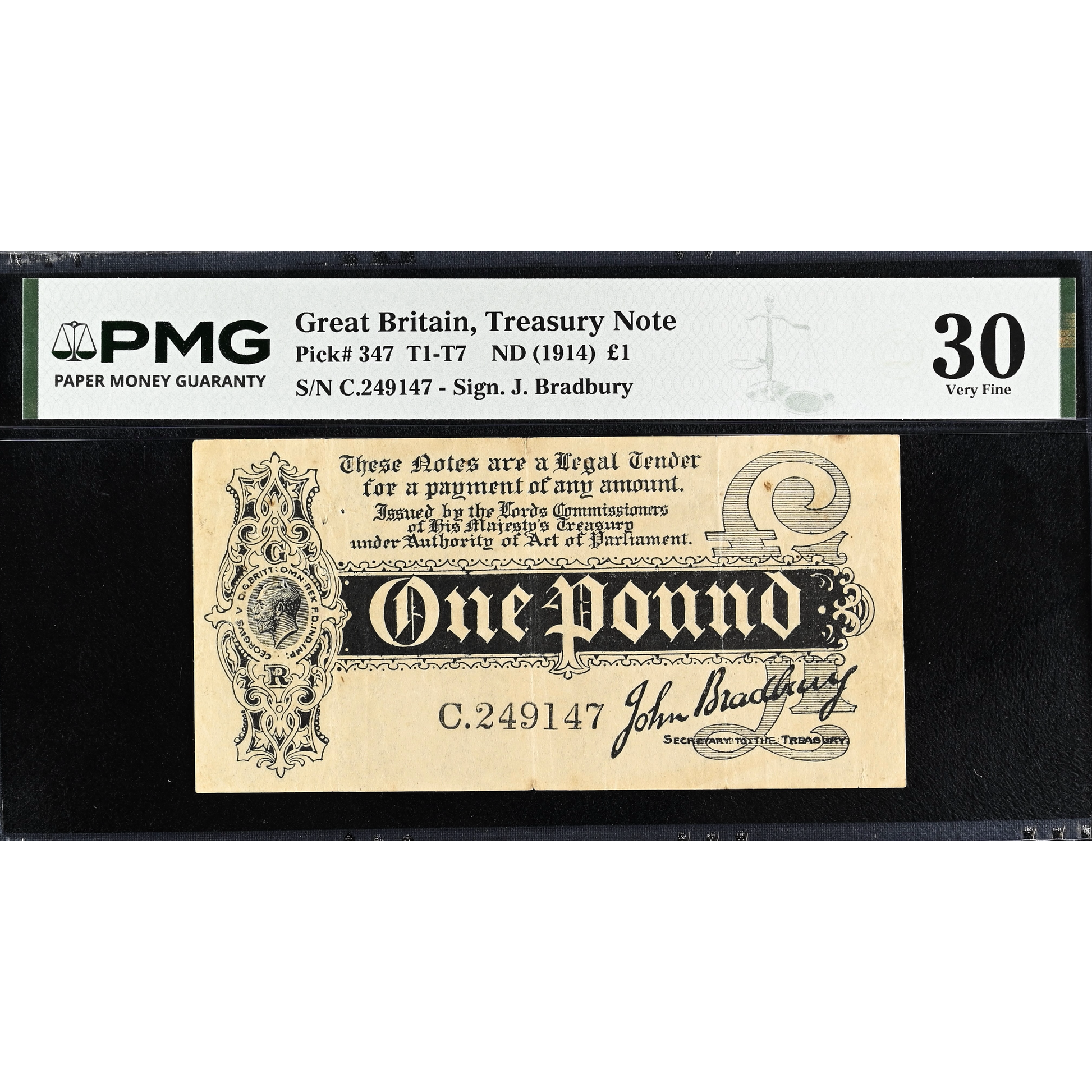 ENGLAND P.347 T1 1914 HM Treasury Bradbury First issue £1 VF 30