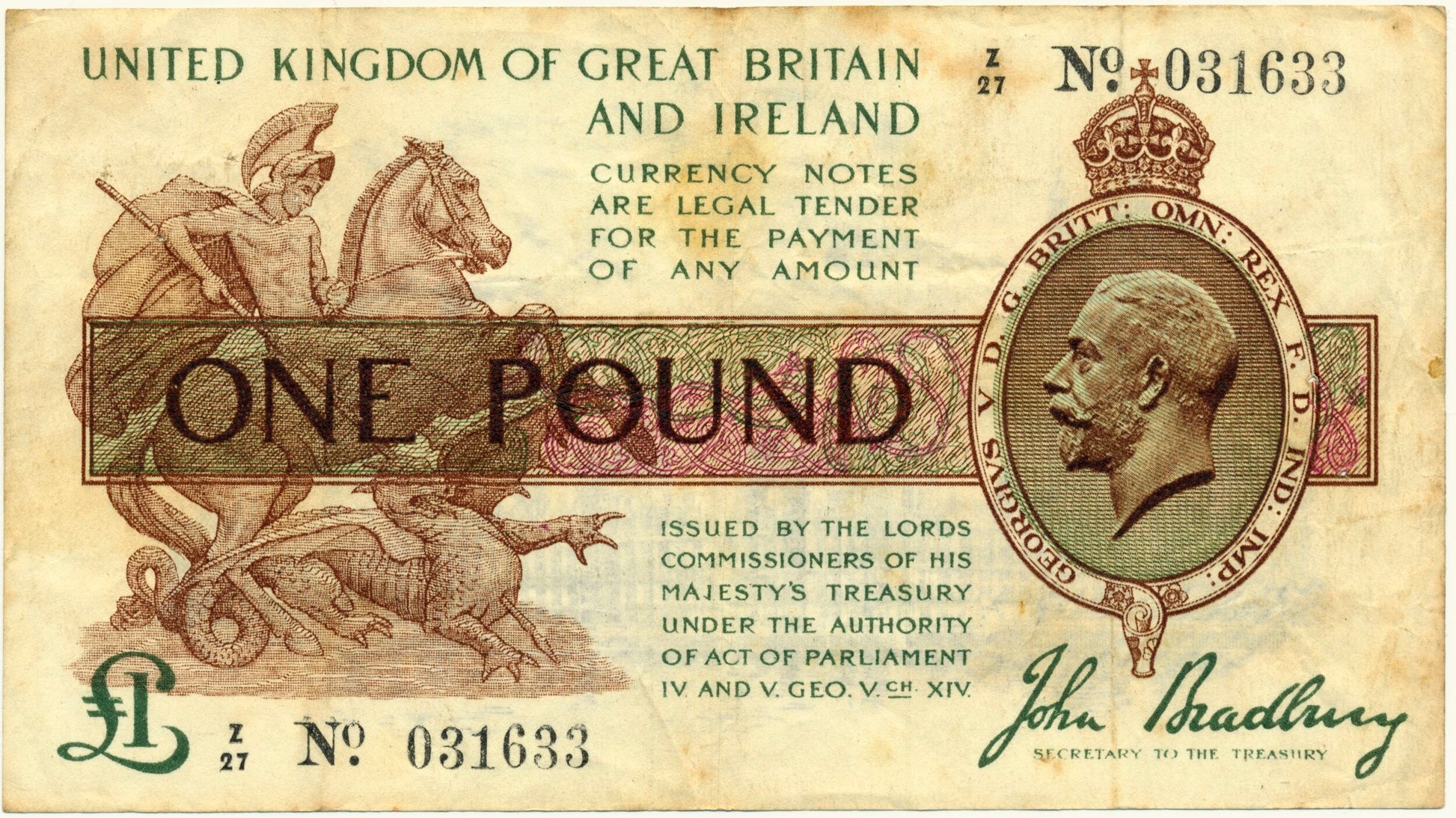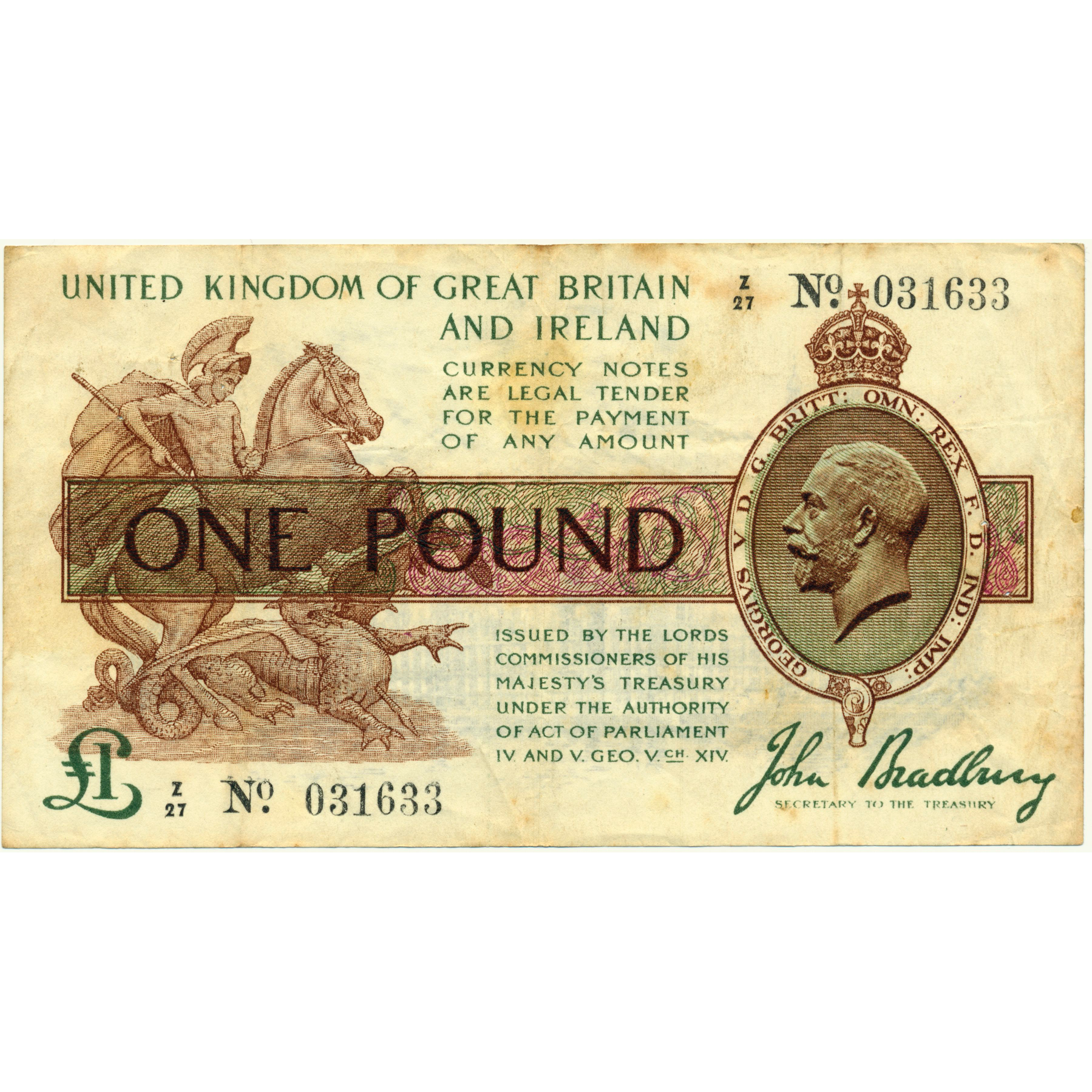 ENGLAND P.351 T16.3 1917 HM Treasury Bradbury £1 GF Z27