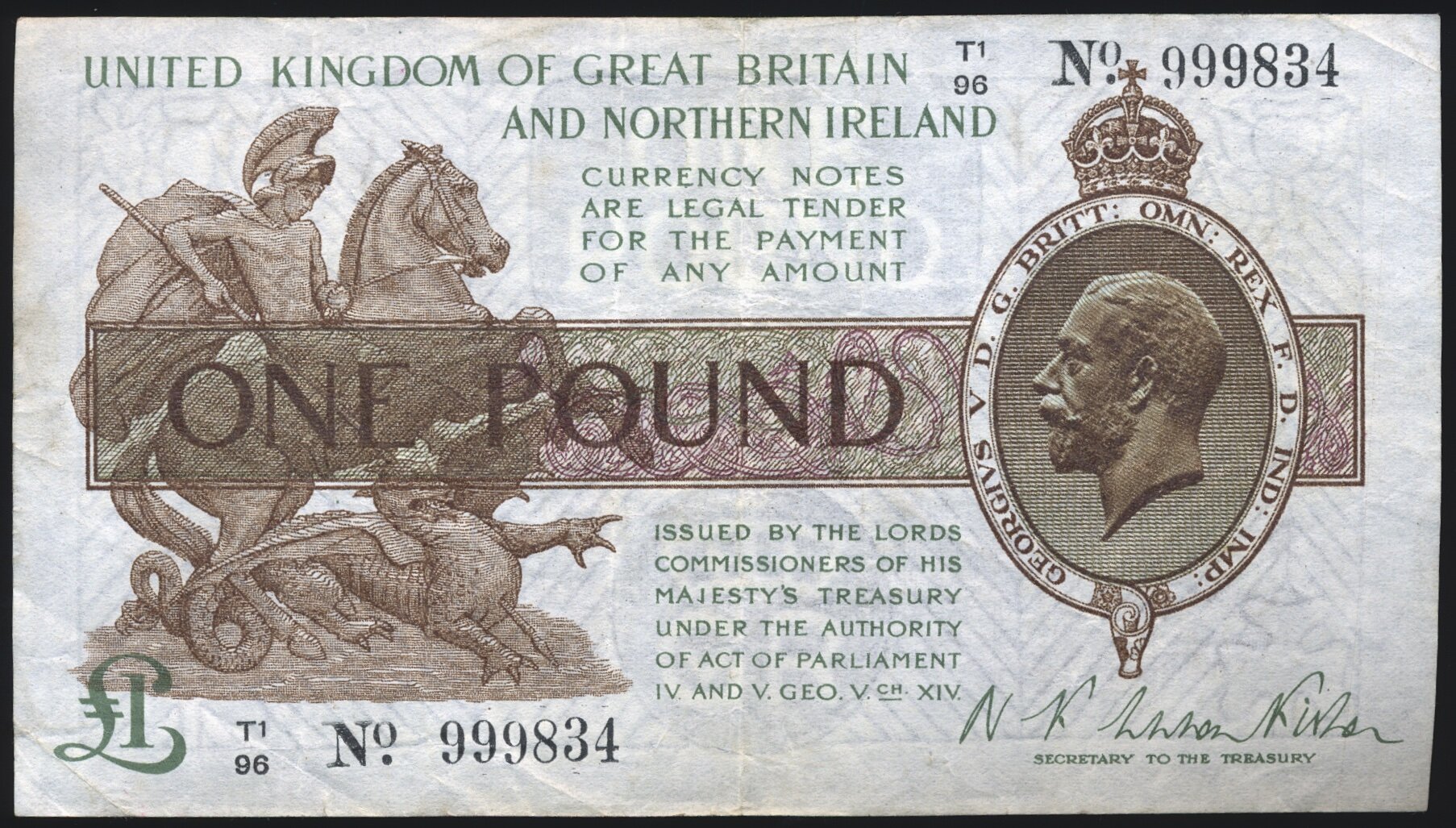 ENGLAND P.361a T34.2 1927 HM Treasury Fisher £1 T/1 VF 30
