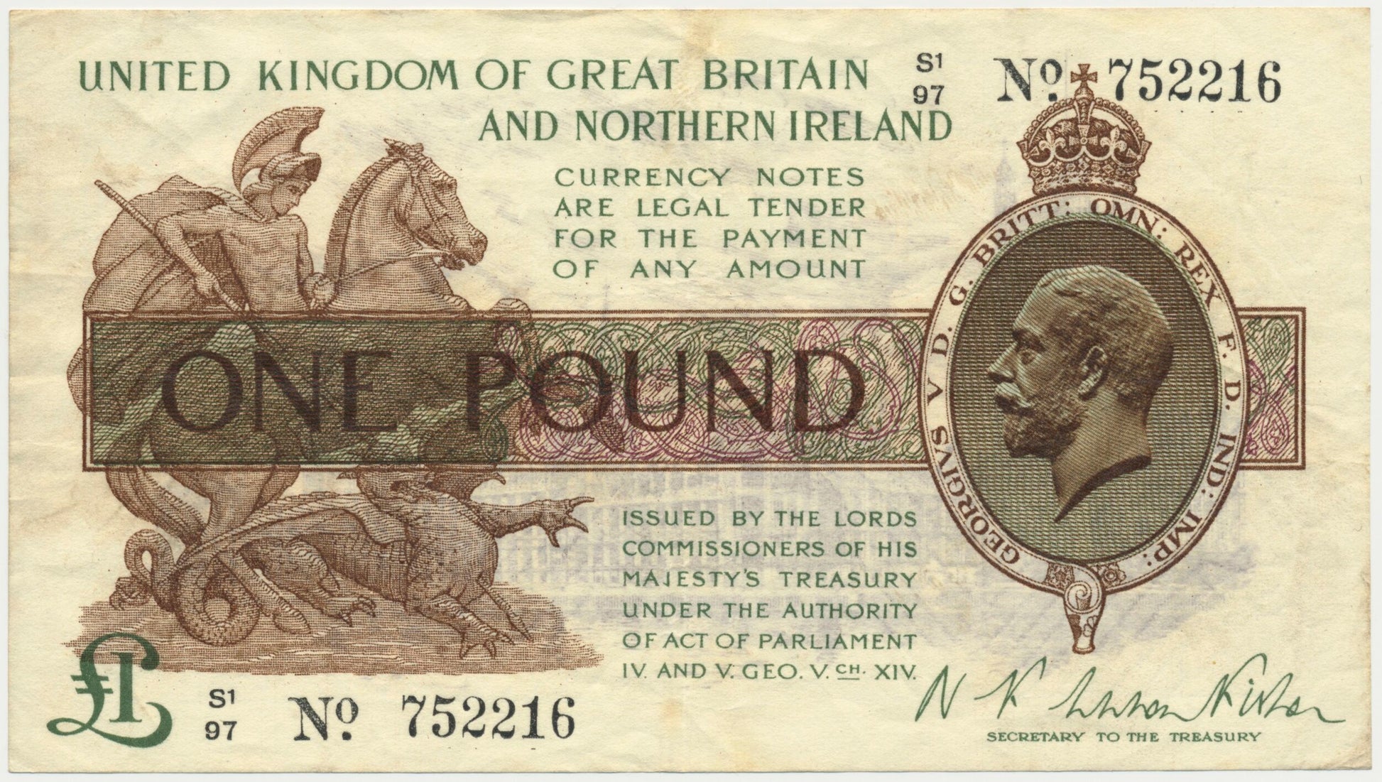 ENGLAND P.361b T35.4 1927 HM Treasury Fisher £1 S1 VF 30