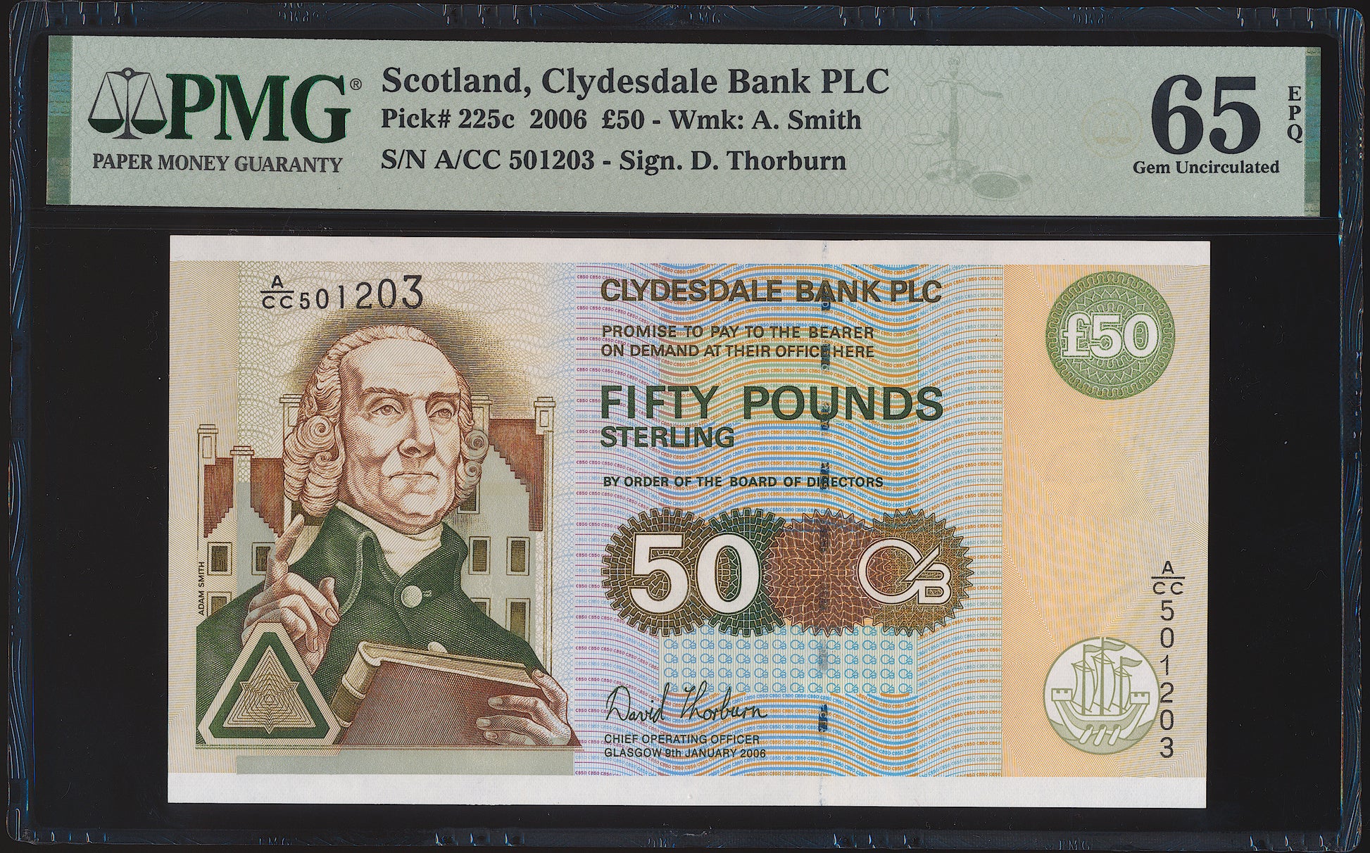SCOTLAND P.225c SC364 2006 Clydesdale Bank £50 GEM UNC 65 EPQ