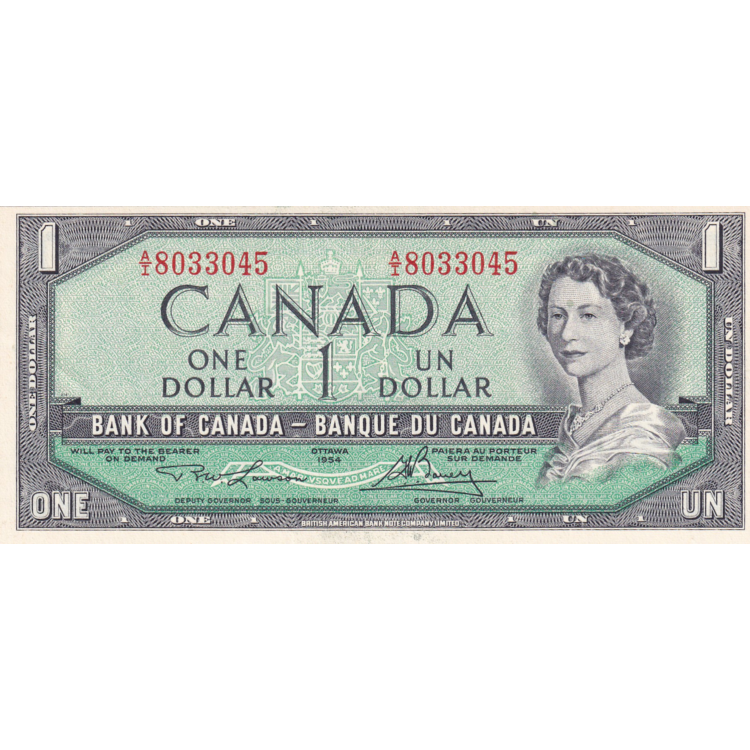 CANADA P.75d 1954 $1 Lawson, Bouey UNC A/I