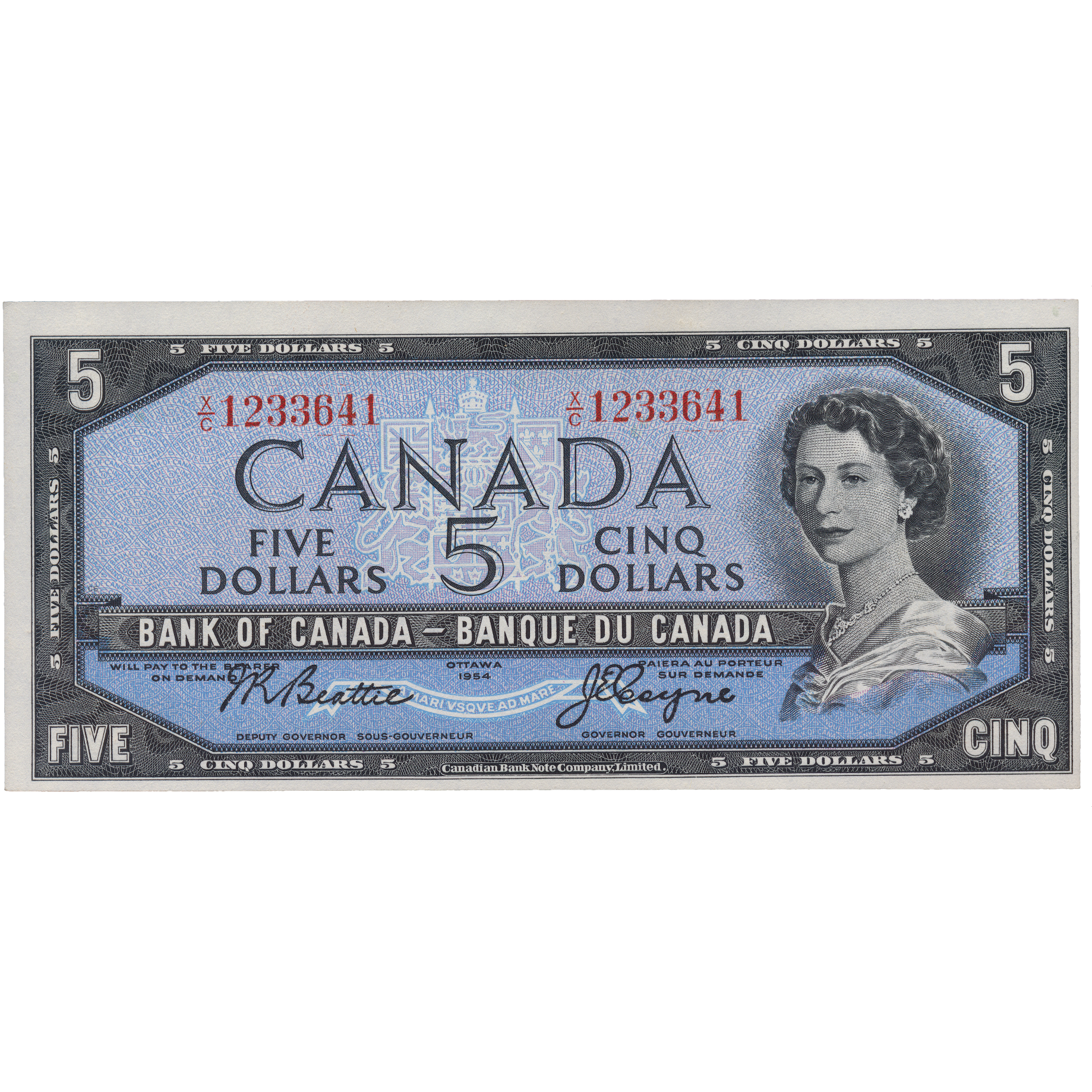 CANADA P.77a 1954 modified design $5 Beattie, Coyne UNC