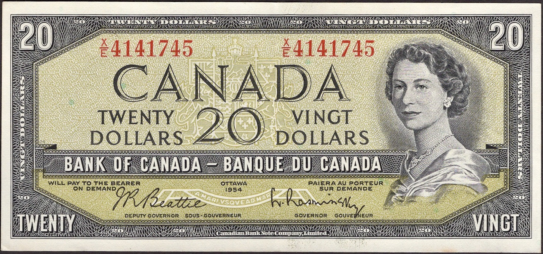 CANADA P.80b 1954 $20 Beattie, Rasminsky GEF