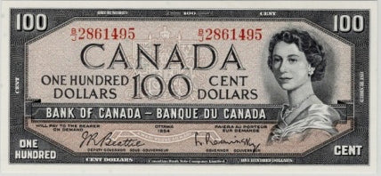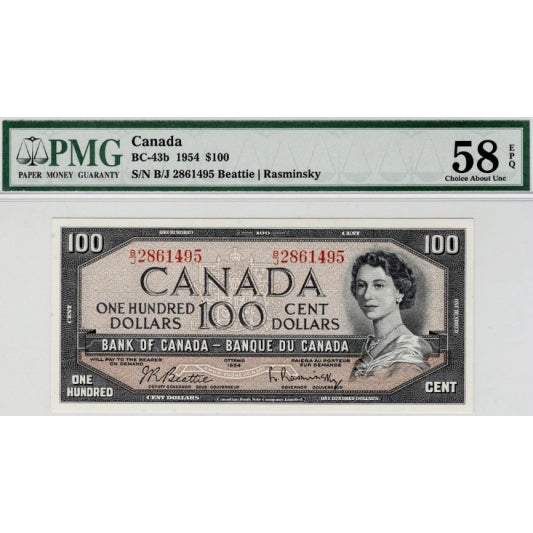 CANADA P.82b BC-43b 1954 $100 Beattie, Rasminsky Choice About UNC EPQ58