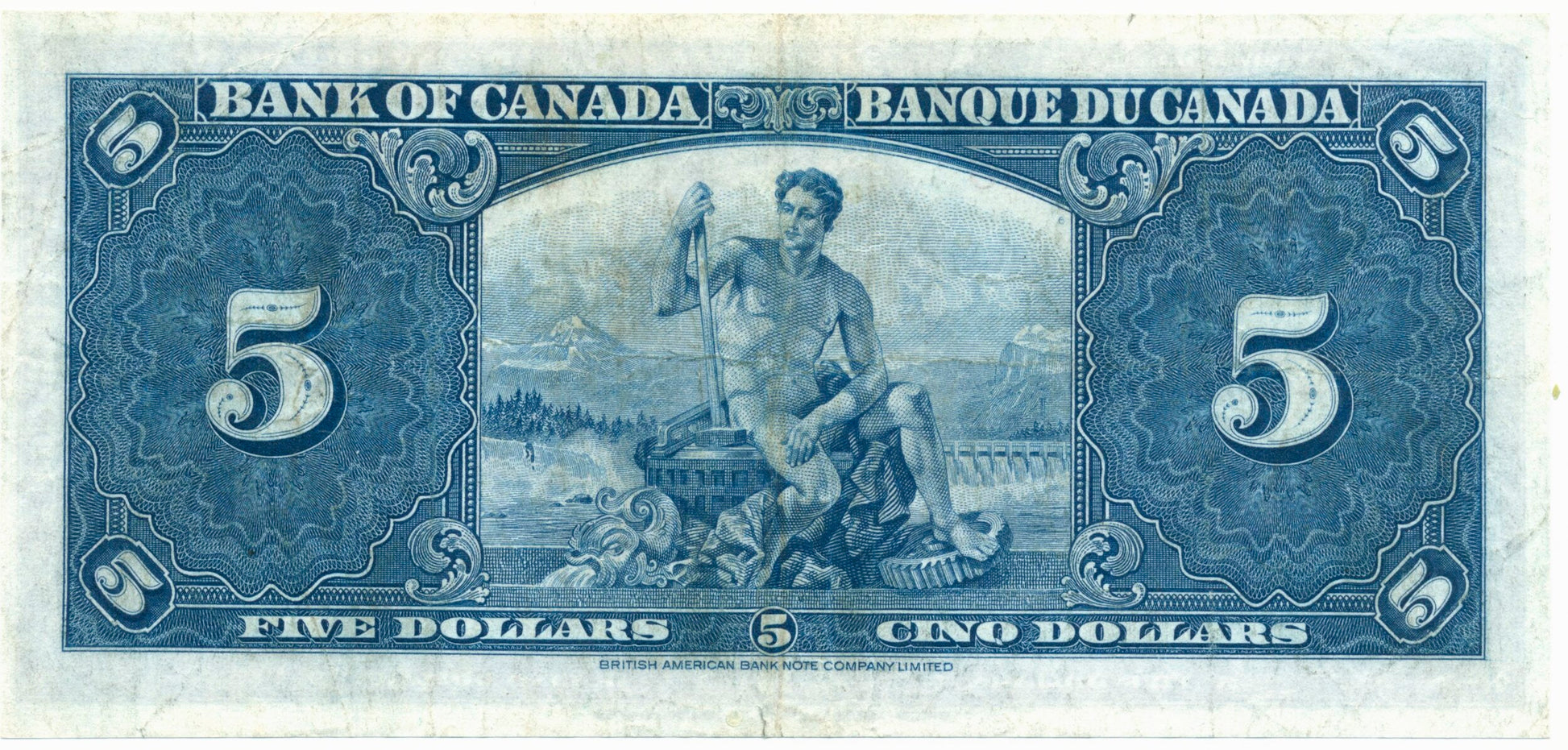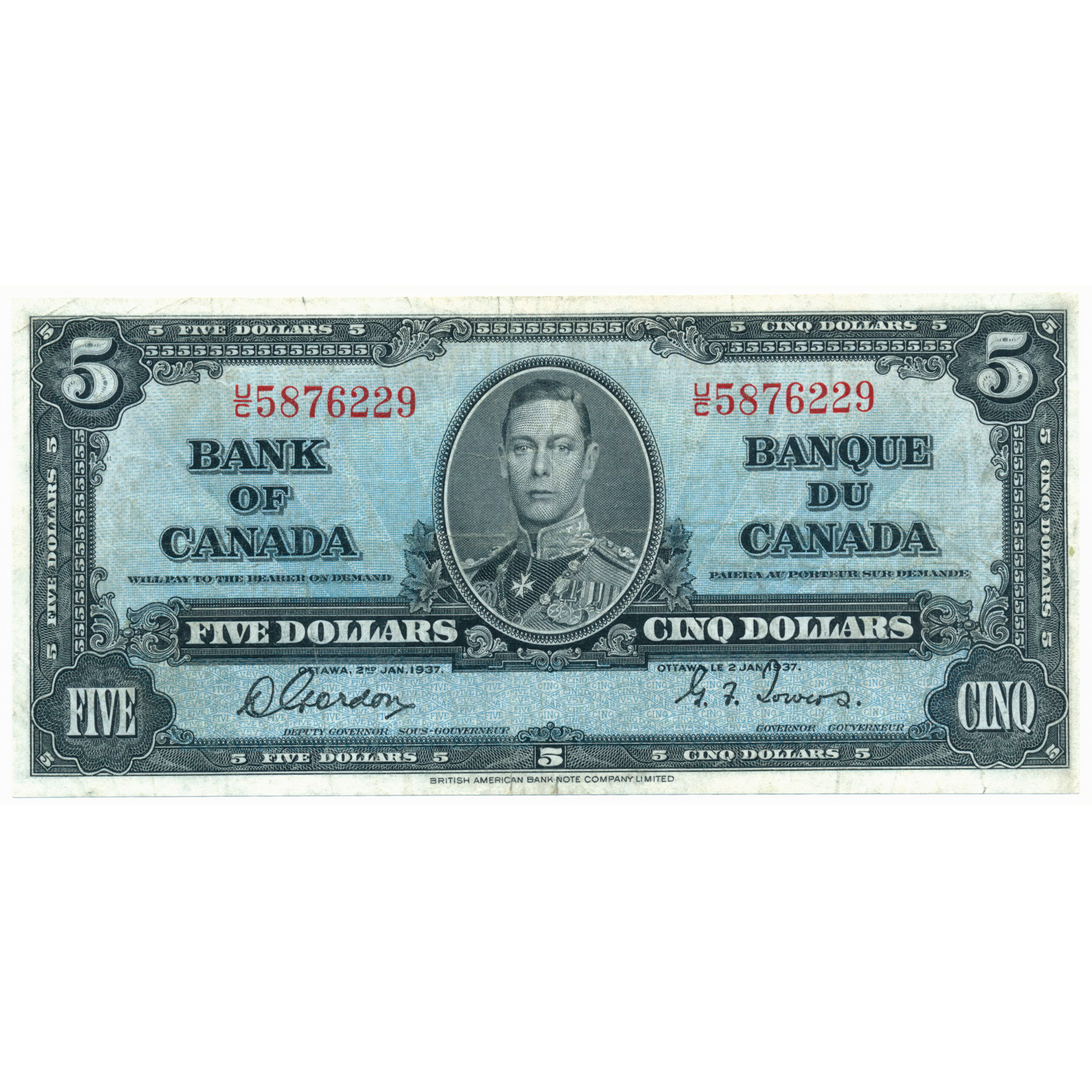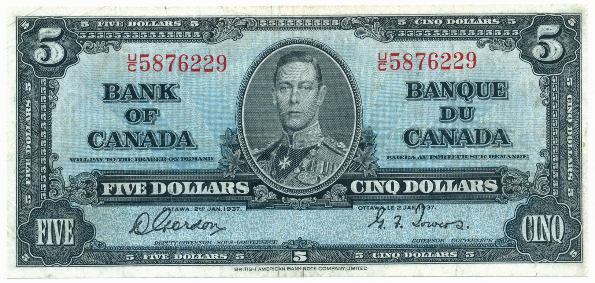 CANADA P.60b 1937 $5 Gordon, Towers VF U/C