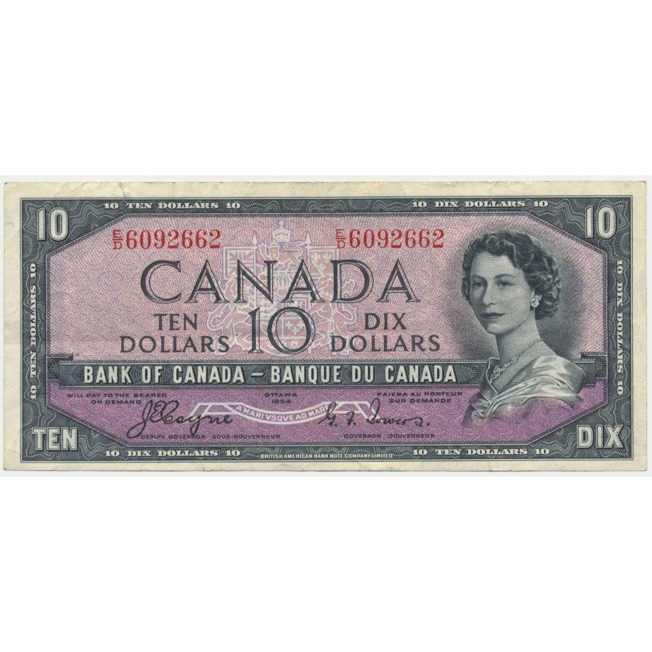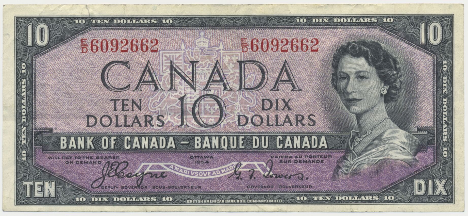 CANADA P.69a 1954 $10 Coyne, Towers VF E/D