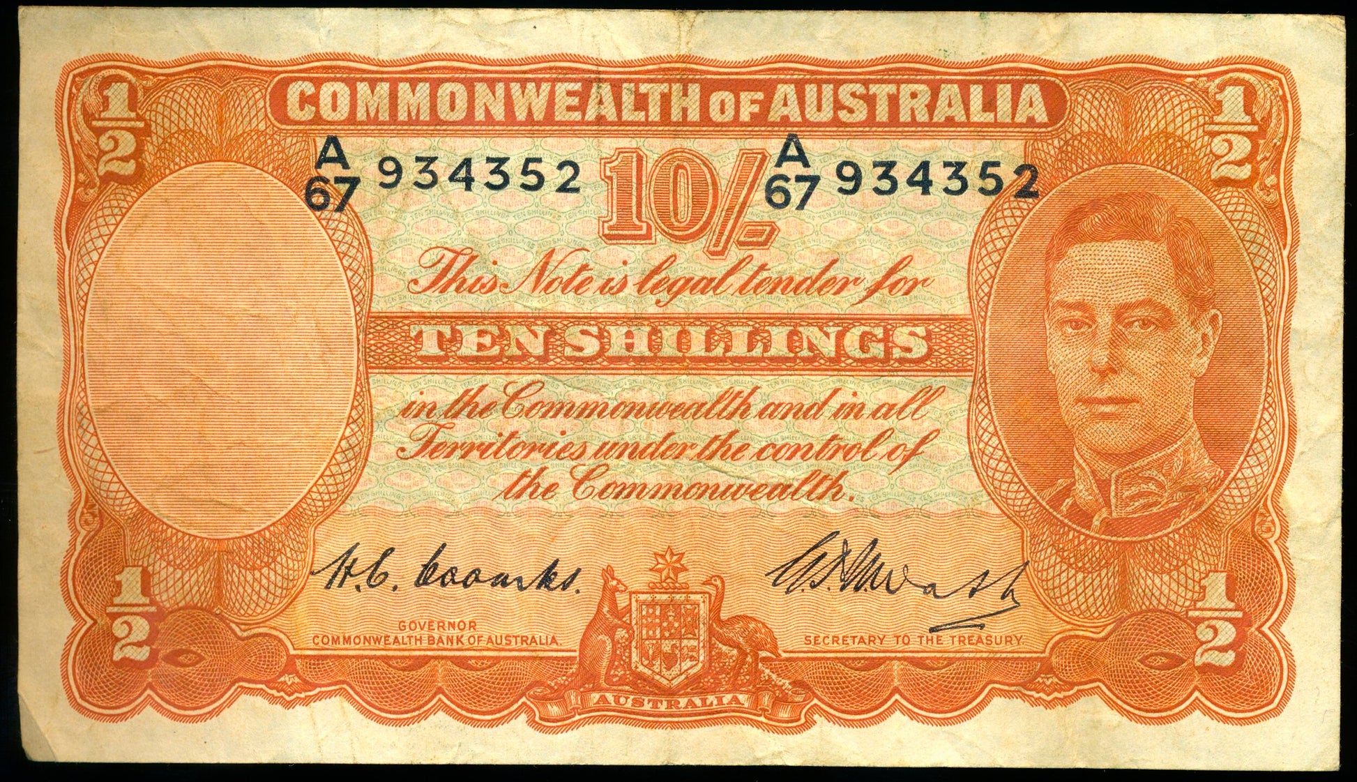 AUSTRALIA P.25c 1938-1952 10 Shillings AVF A67