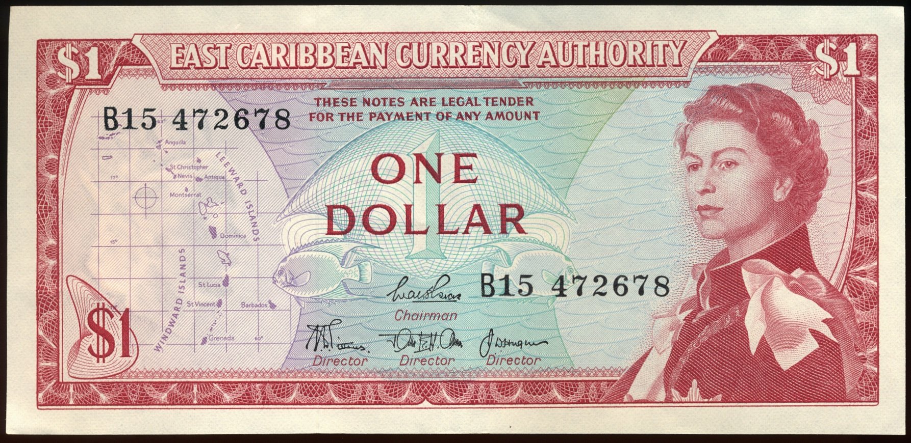 EAST CARIBBEAN P.13b 1965 $1 EF B15