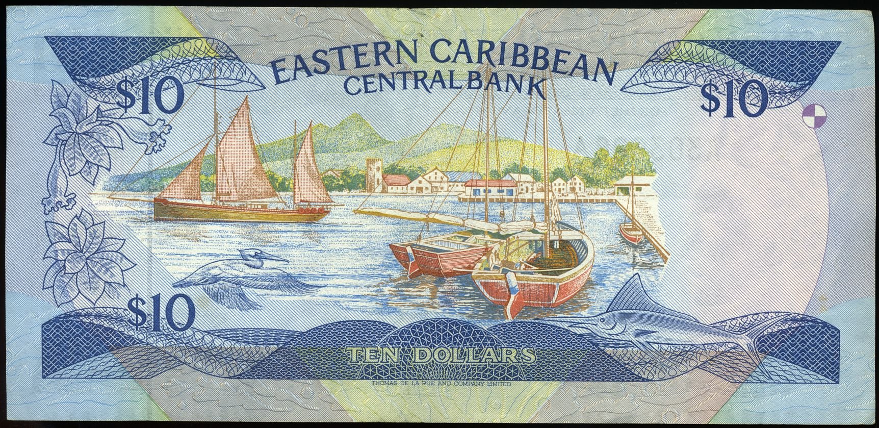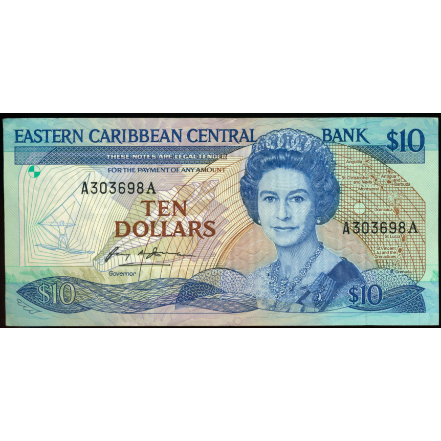 EAST CARIBBEAN P.23A1 1988 $10 Suffix A Antigua NEF