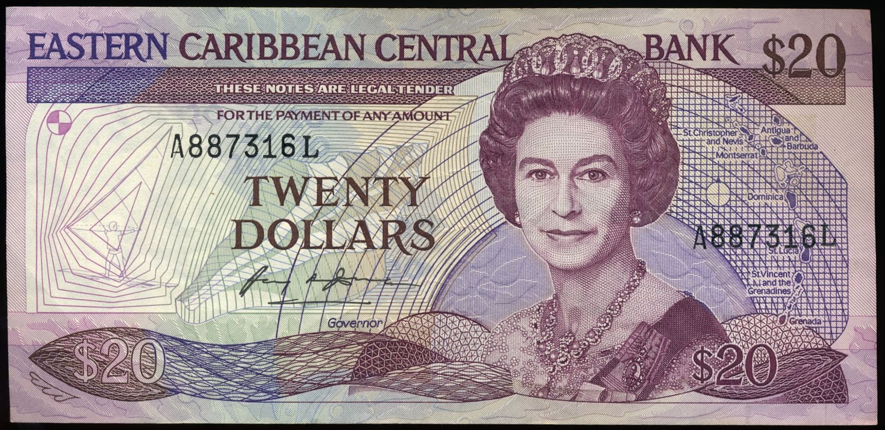 EAST CARIBBEAN P.19L Suffix L St Lucia 1985 $20 GVF