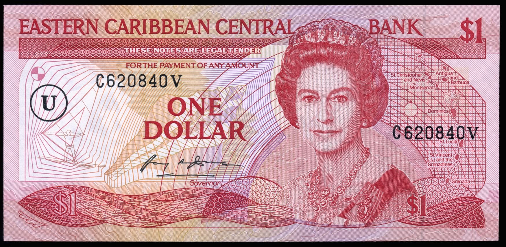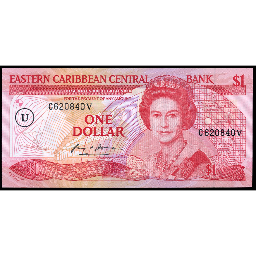 EAST CARIBBEAN P.17U Overprint U in circle Suffix V St Vincent 1985 $1 UNC