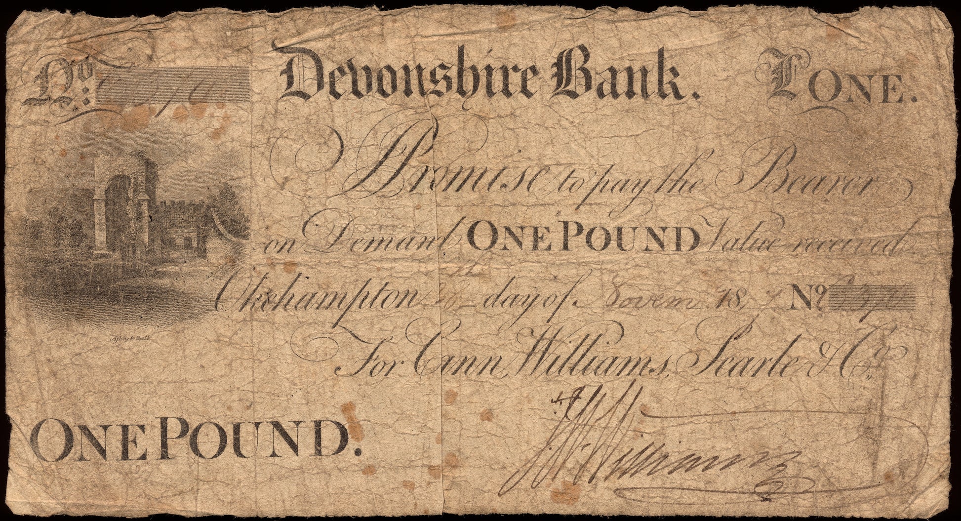 Devonshire Bank 1817 £1 banknote Outing 765a