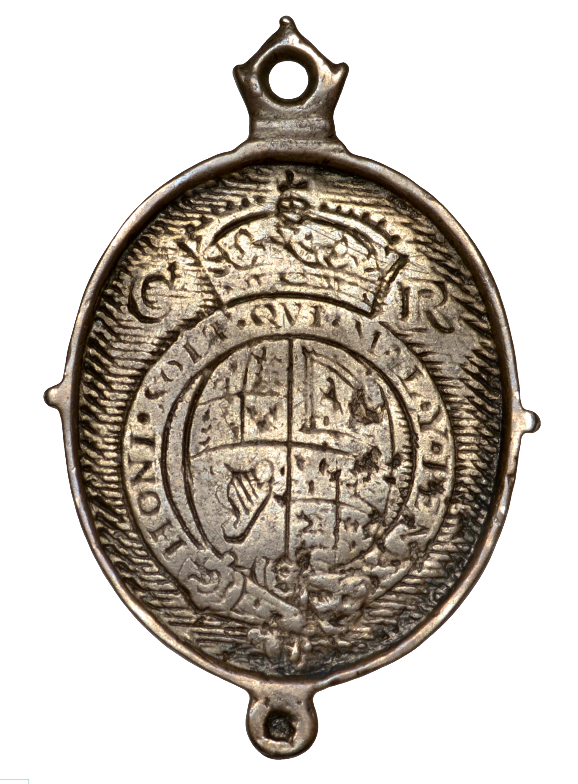 - Badge worn as medal or ornament as a sign of affection for the monarchy and must have been made when in exile or very soon after the restoration.