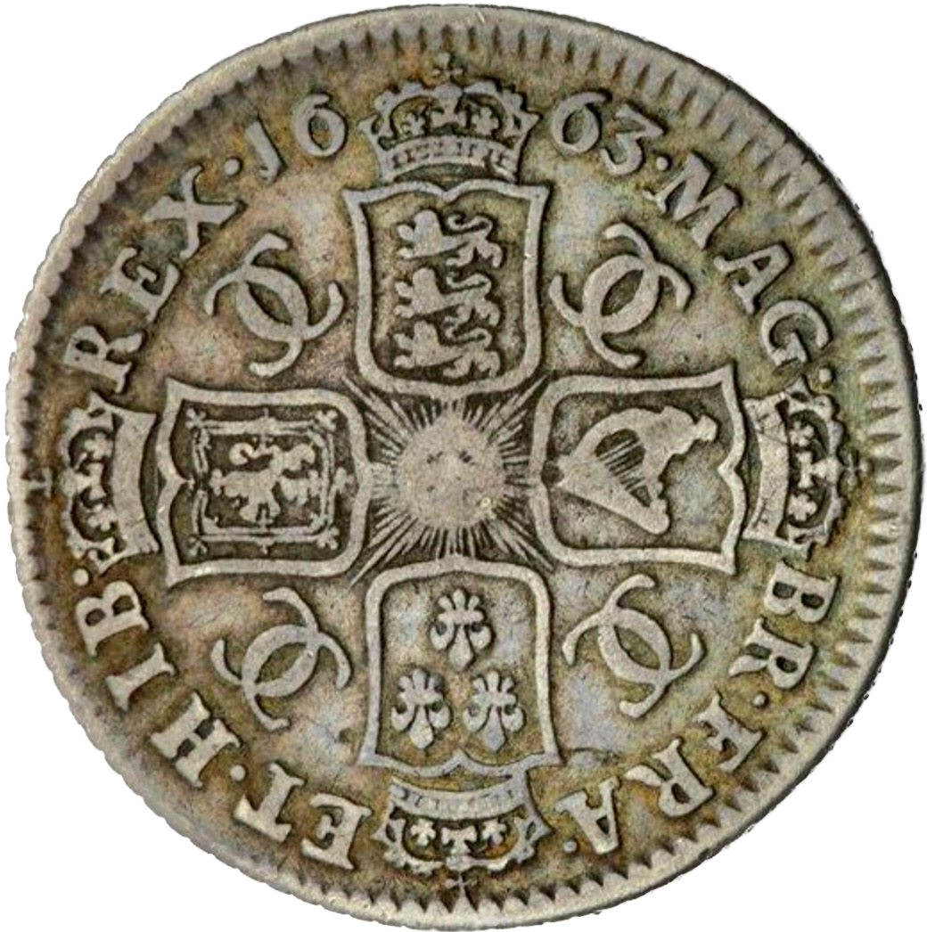 1663 Shilling First bust Transposed shields S3371 ESC 504 Extremely rare (R3) F/GF
