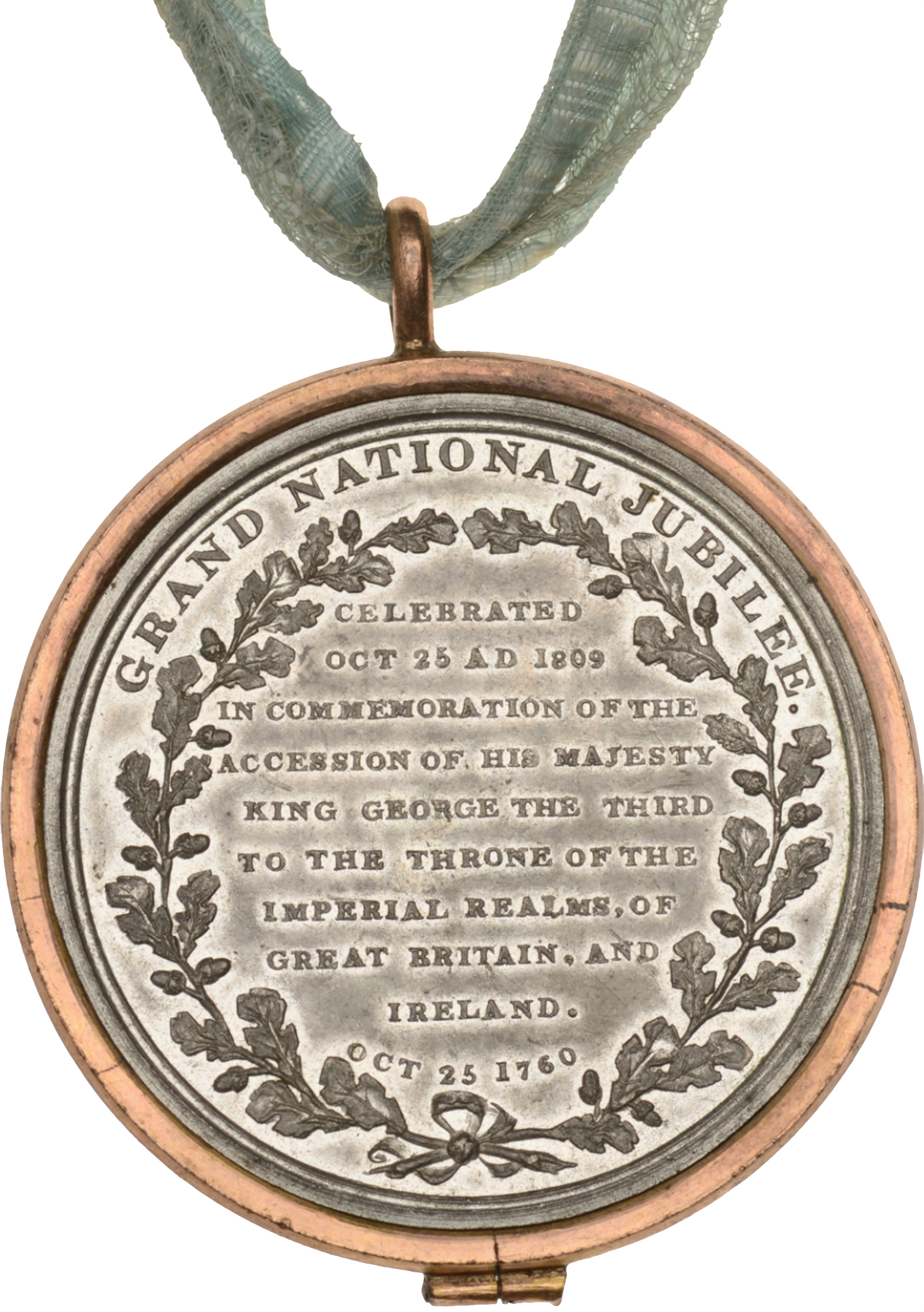 1809 Grand National Jubilee 39mm white metal medal in brass ring BHM 643