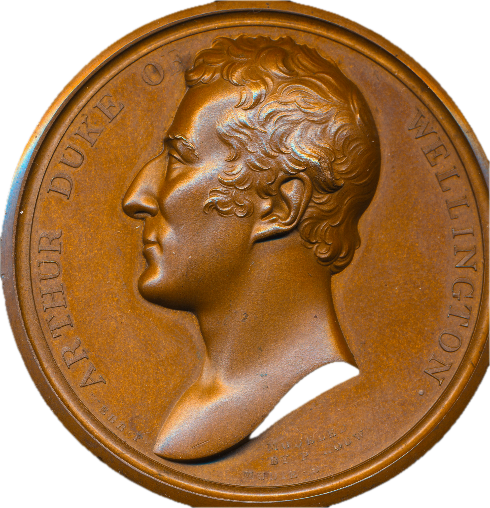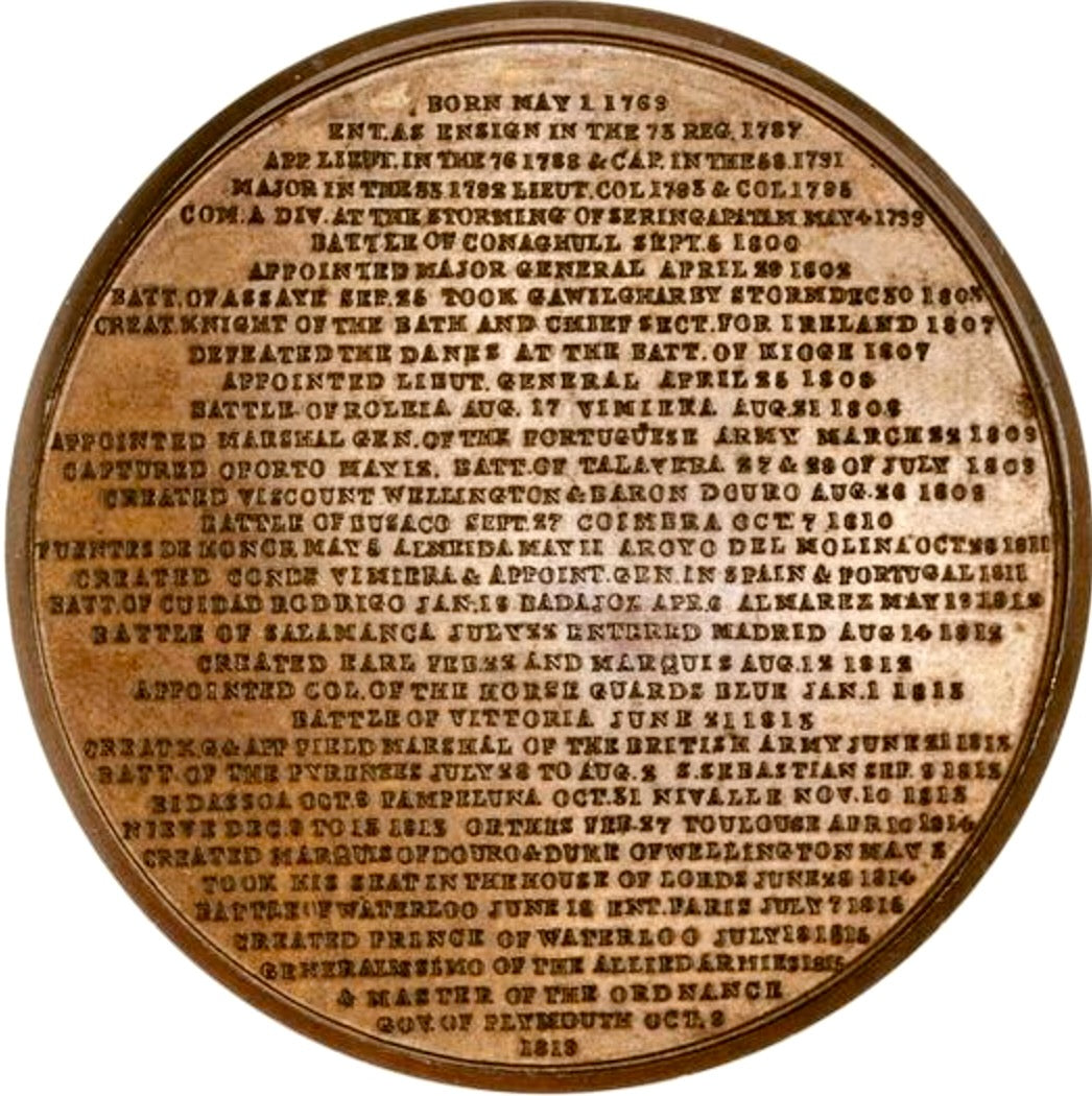 1819 Dule of Wellington, Governer of Plymouth 56mm bronze medal in case BHM 986 Eimer 1118