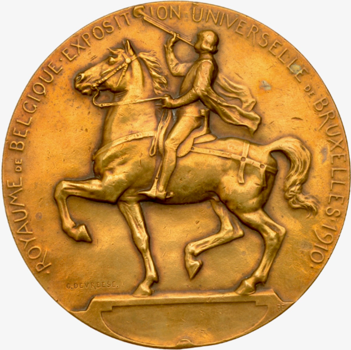 1910 BELGIUM Exposition Universelle Brussels 71mm bronze medal by G Devreese