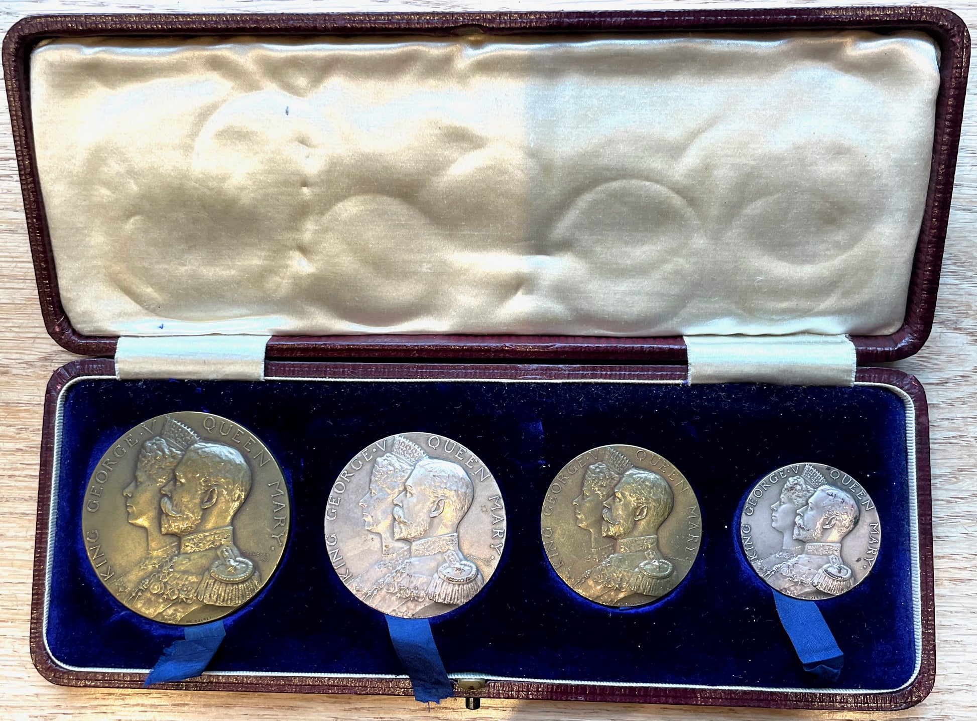 1911 Coronation cased set of four medals bronze and silver BHM 4056 Extremely Rare UNC